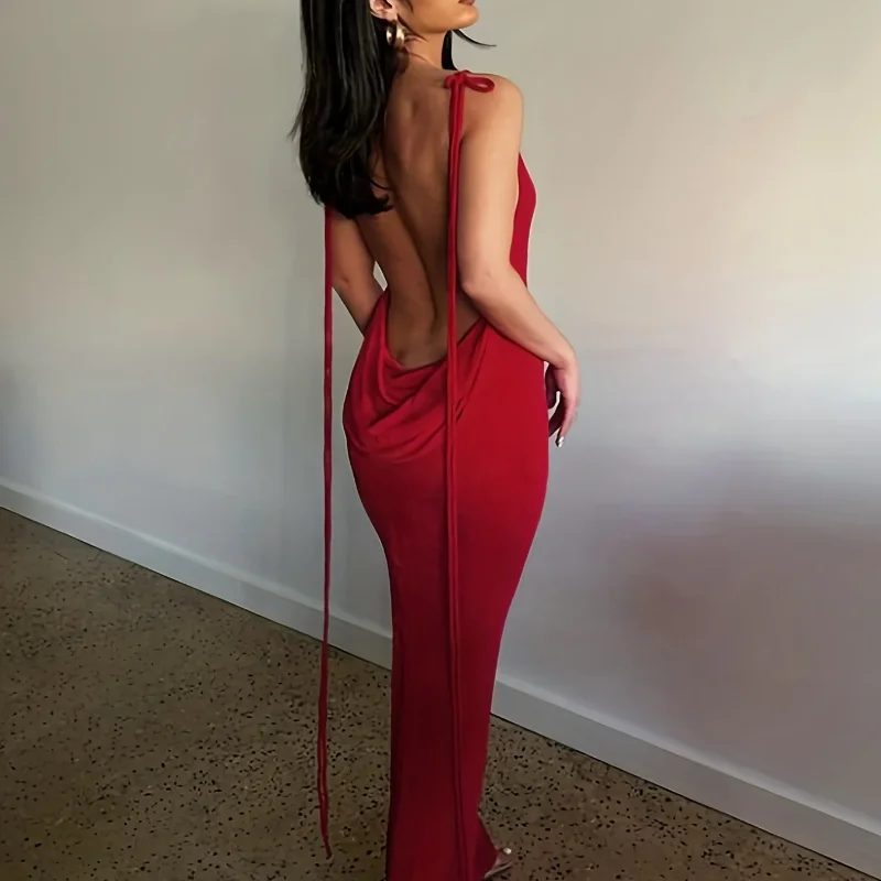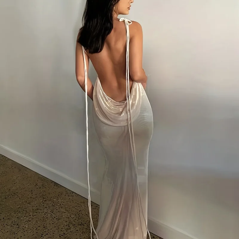 2024 Summer Strapless Hang-Neck Dress with Temperature Control Features
