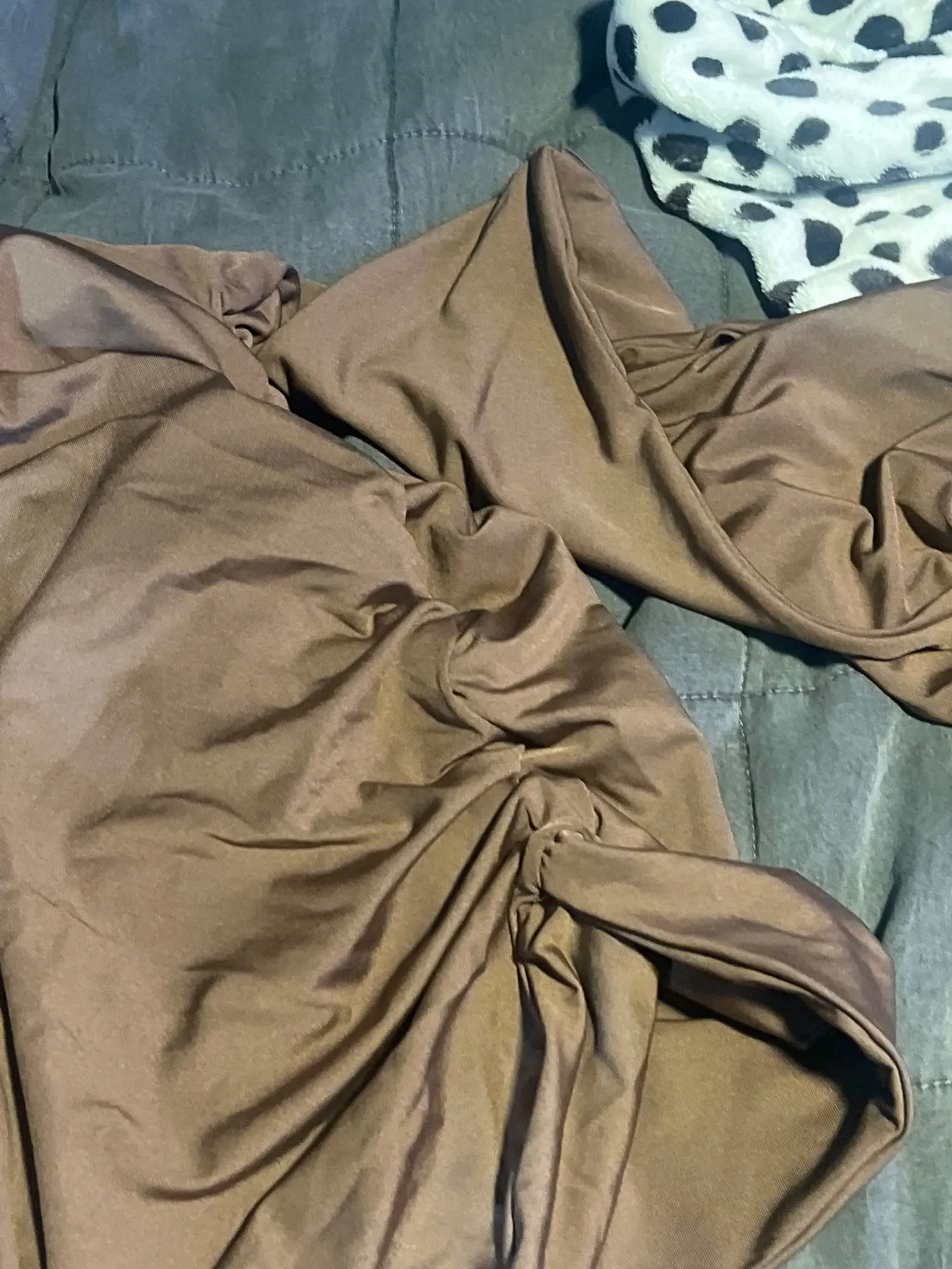 This dress is a great value nice thick stretchy shiny material runs a little small but not off by much