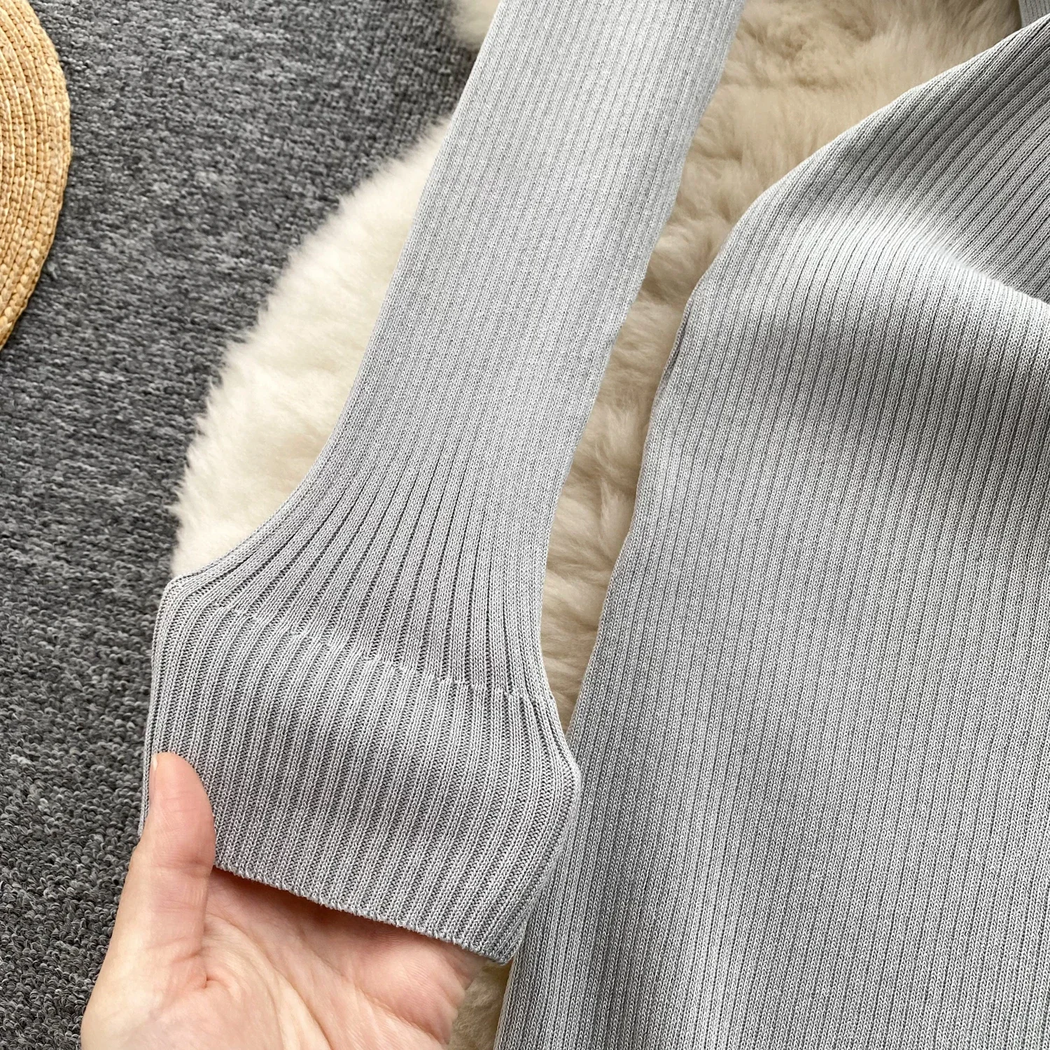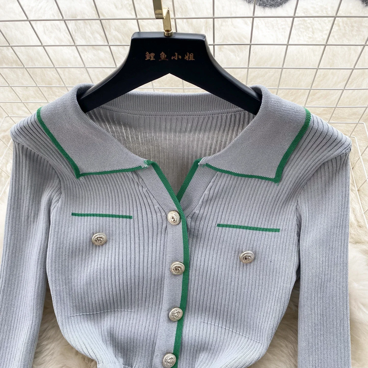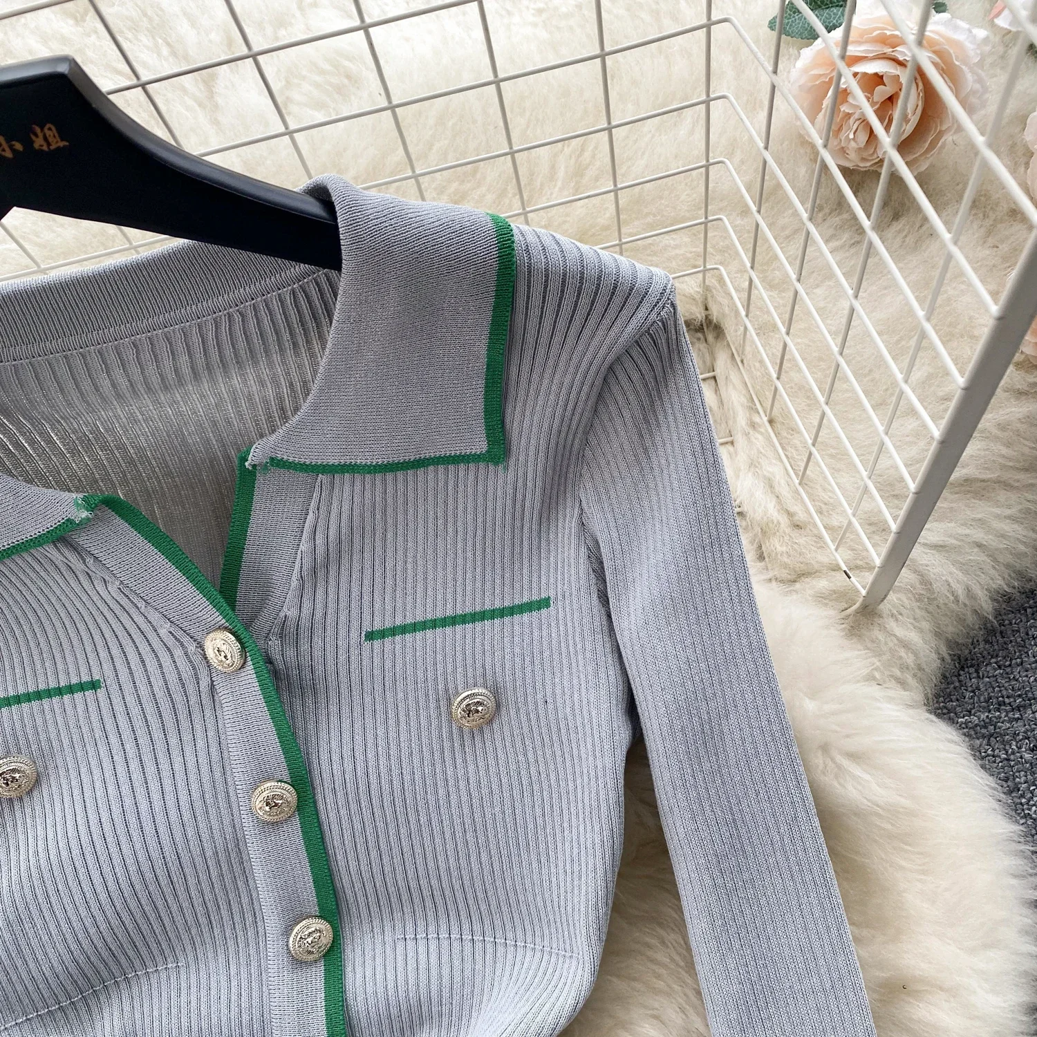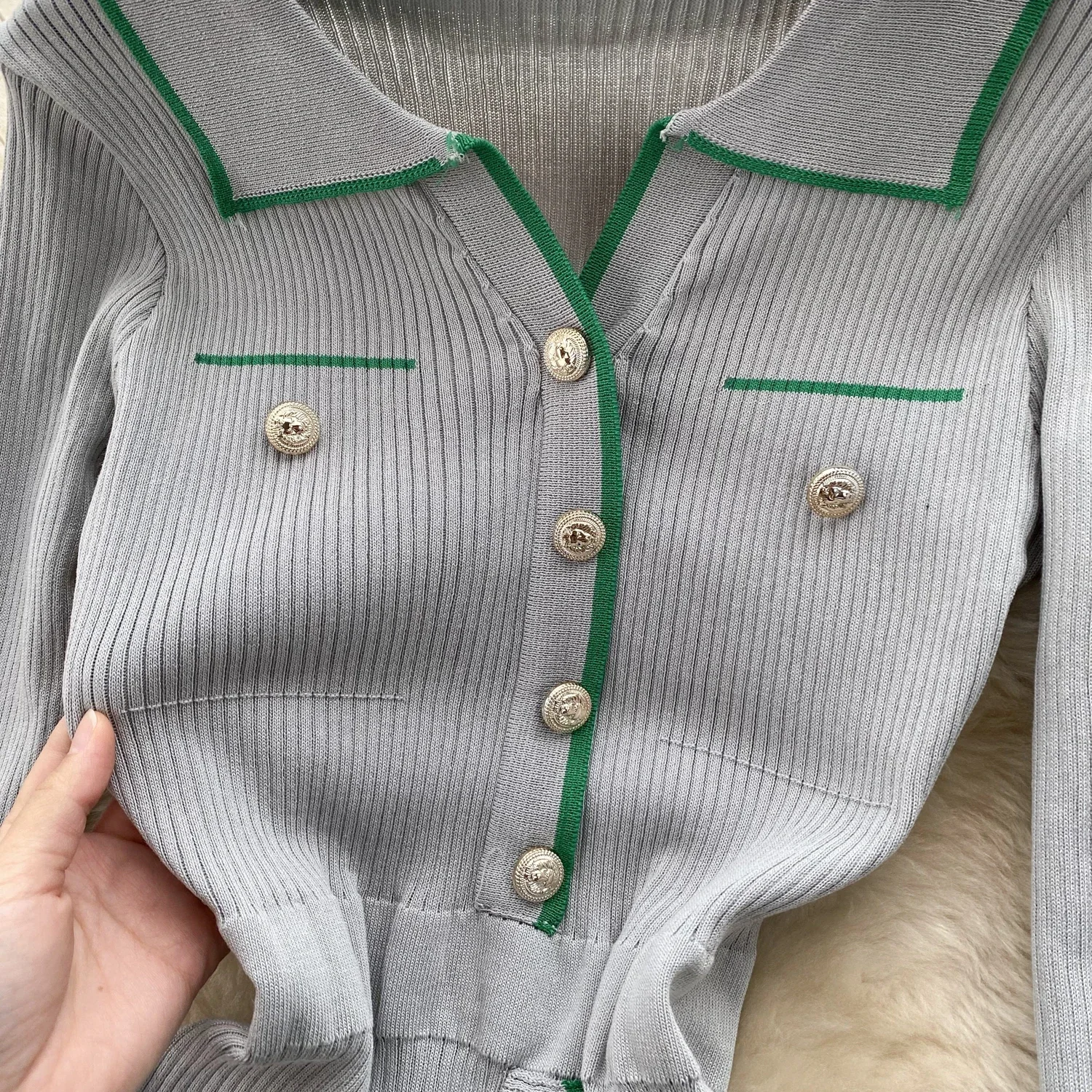 Elevate your look with our black knit sweater dress. This elegant long sleeve midi features a contrast trim polo collar, pearl buttons, and a chic bodycon fit. Shop now.
