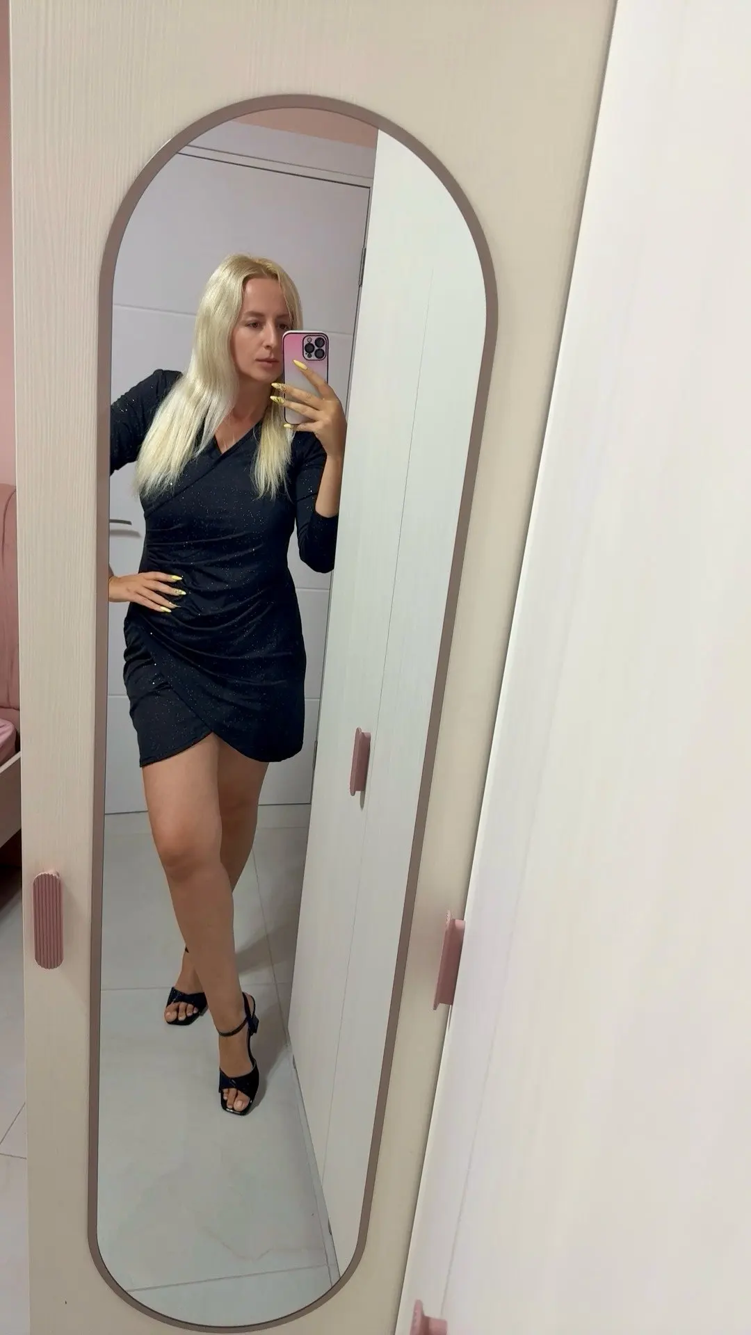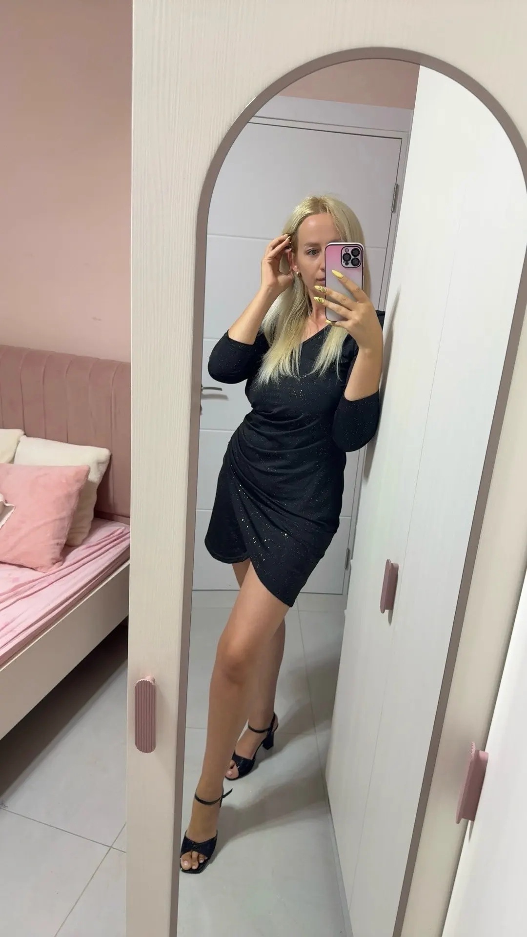 The dress is basically beautiful, suitable for an evening outing in the dark when you won’t be closely observed. 😆 . Because the fabric is worth its price – it’s polyester. And I slightly miscalculated the size, although I took a European 44. But it hangs slightly on the back and sides. Very suitable for those who want to hide their belly, it has folds in the front.