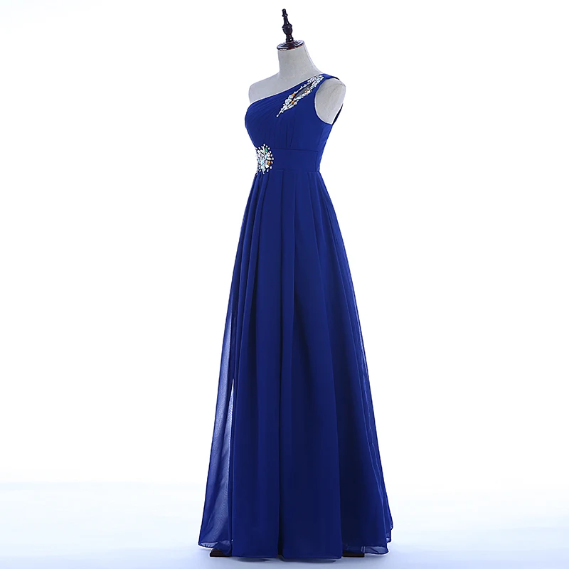 Blue Evening Dress – Long Chiffon Lace-Up One-Shoulder Maxi