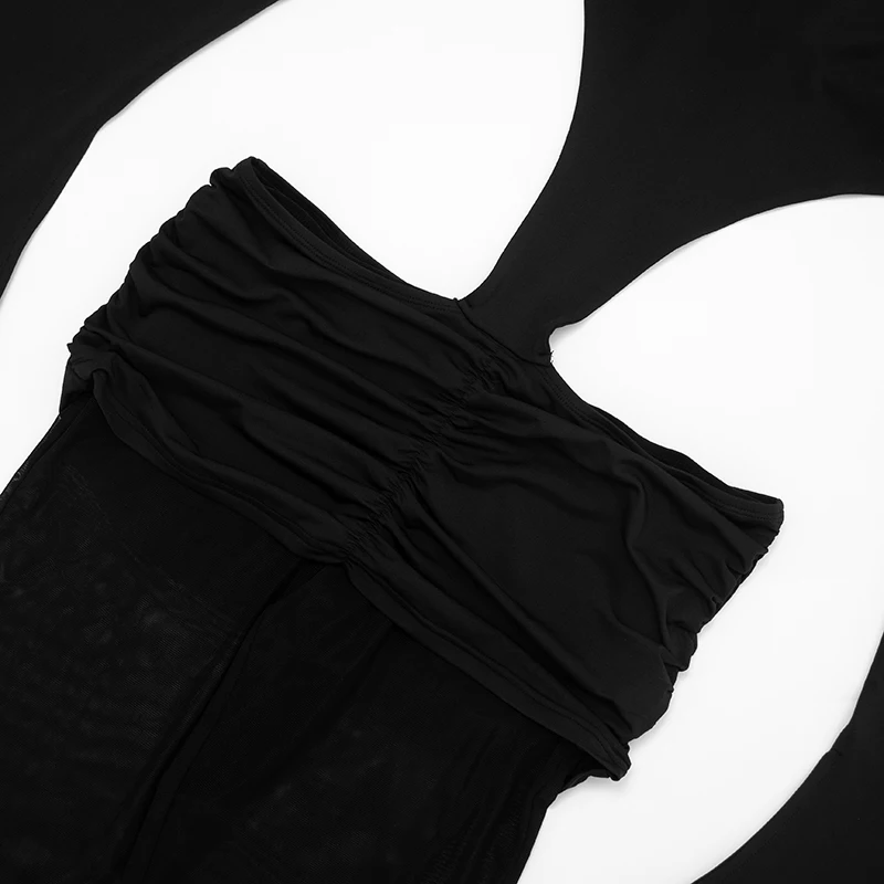 Bodycon Jumpsuit – Off-Shoulder Mesh Backless Long Sleeve