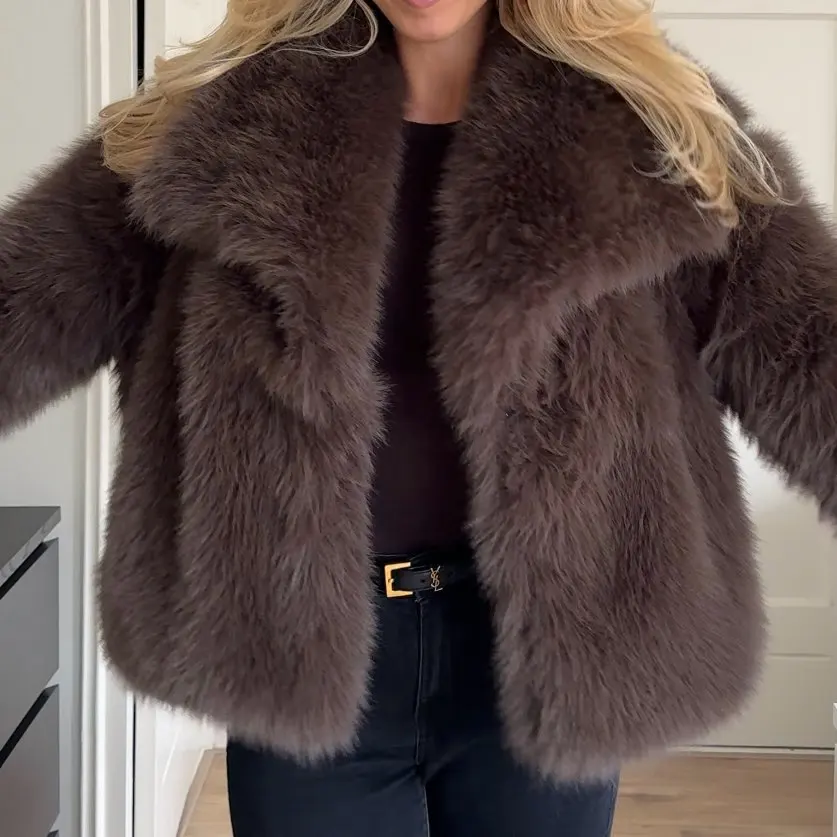 20 reviews for Brown Fur Jacket – Thick Long Sleeve Faux Fur Coat KONDALA 2025