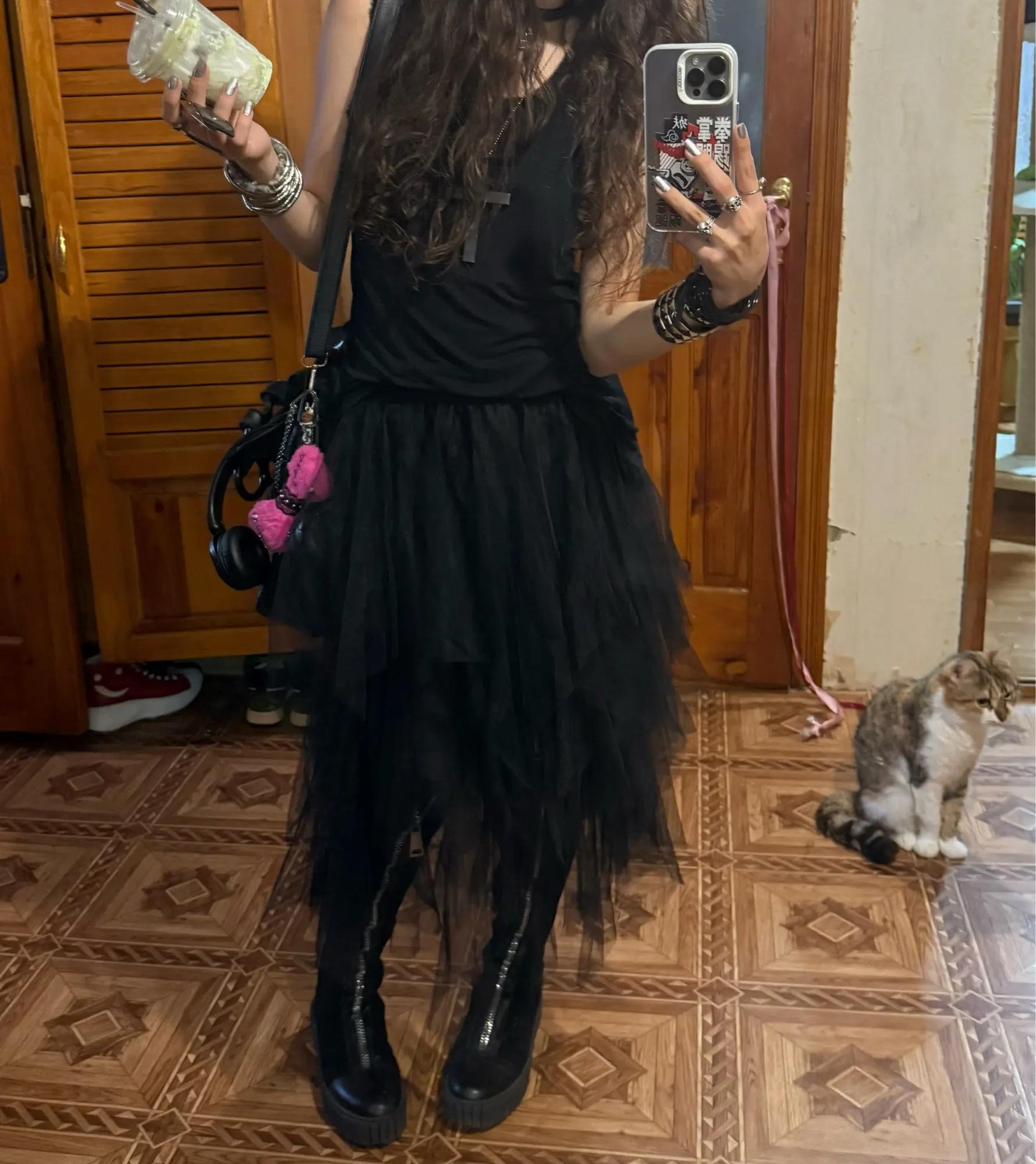 Fairycore Mesh Skirt Irregular Tulle Bubble Design