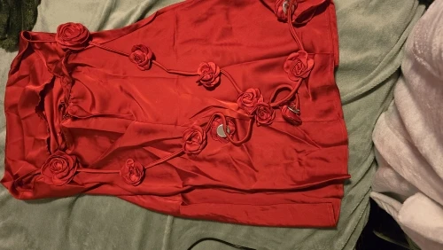 Nice dress except one thing which i don’t like . Better if you sew up roses than it’s attached with this metallic thing . It doesn’t look good this metallic thing . But i will sew it by myself . In general cute and elegant dress
