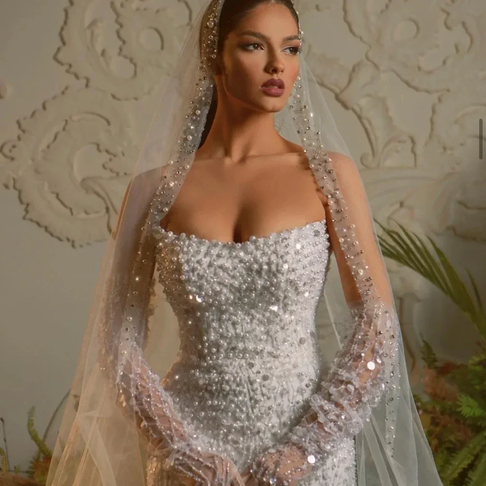 Custom Mermaid Wedding Dresses – Strapless Sequin Pearls