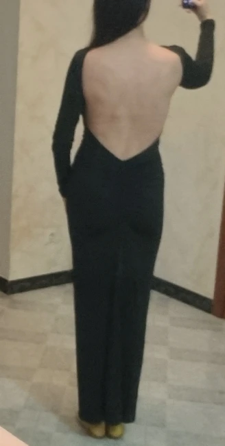I should have taken size S, the dress is too big for me but still beautiful. The fabric is a bit thin but not see-through, awesome back 👍 for height 170, wear only with heels, otherwise it will drag on the ground