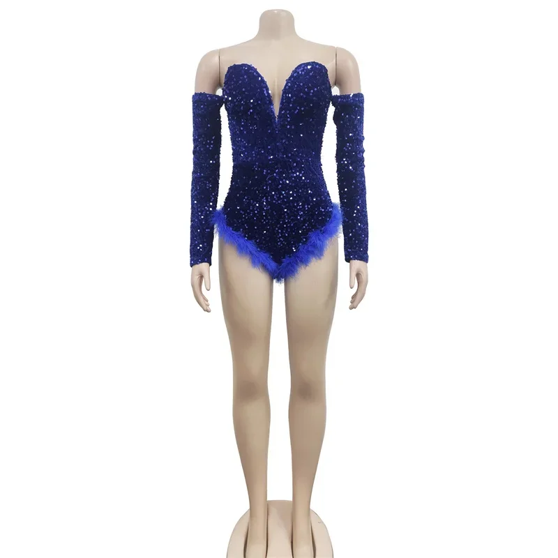 1 review for Feather Jumpsuit Sequined Splices Sleeve Backless Slim Fit