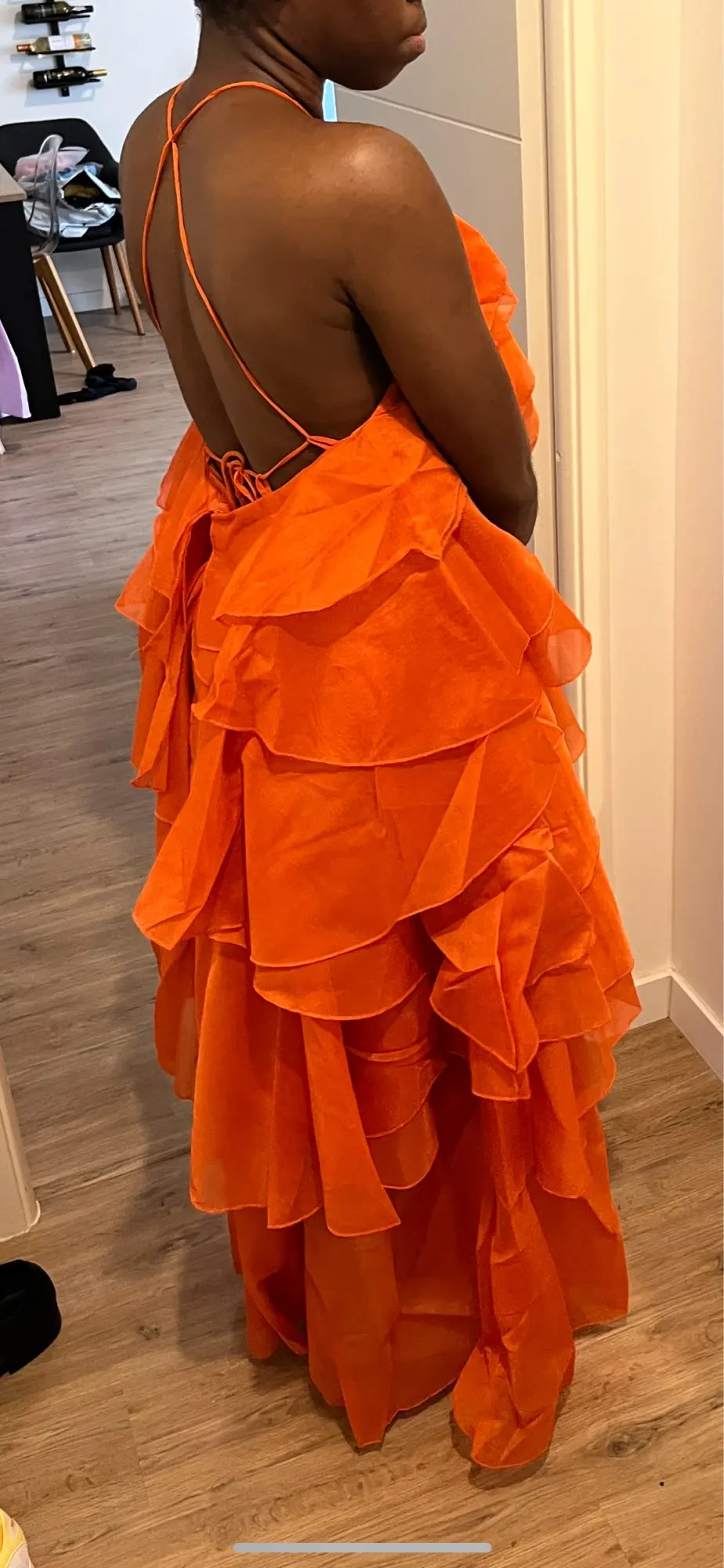 Looks stunning. Bought it for my sister’s wedding. Im european size m and i am 1m70. M was a bit too big in the back the s looks perfect. Do not hesitate.