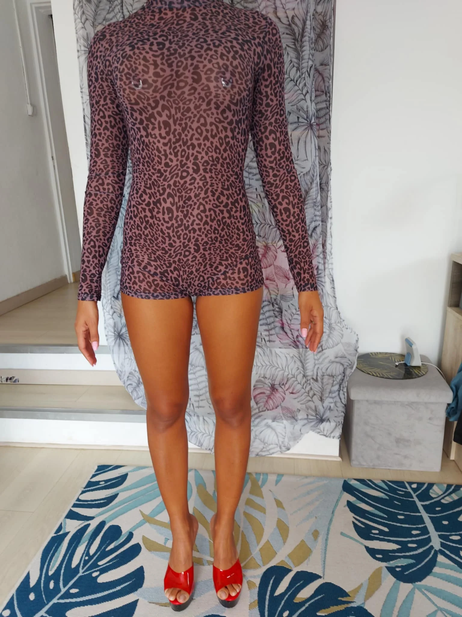 5 reviews for Leopard Print Romper Full Sleeve Turtleneck Skinny Stretch
