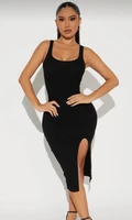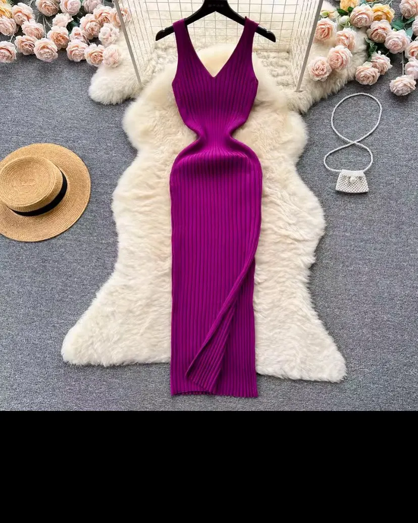 Long Dress Streetwear: Elastic Bodycon Knit Split Hips