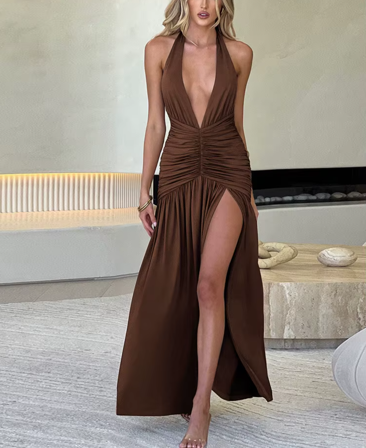 Long Dresses Solid are the ultimate blend of chic and daring—hipster halters, backless splits, and nibber accents that turn heads. Elevate your wardrobe with these striking silhouettes today.