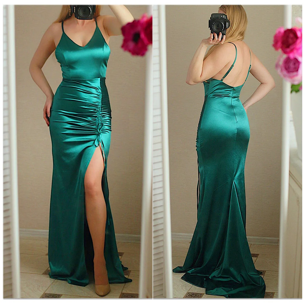 Step into unforgettable romance with our stunning emerald green satin split – a mermaid wedding dress that turns every eye toward you. Feel the luxe silk and let your own fairy‑tale moment unfold.