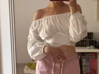 The elegant blouse with off-the-shoulder neckline is magnificent and made of very beautiful fabric. Thank you very much, company.