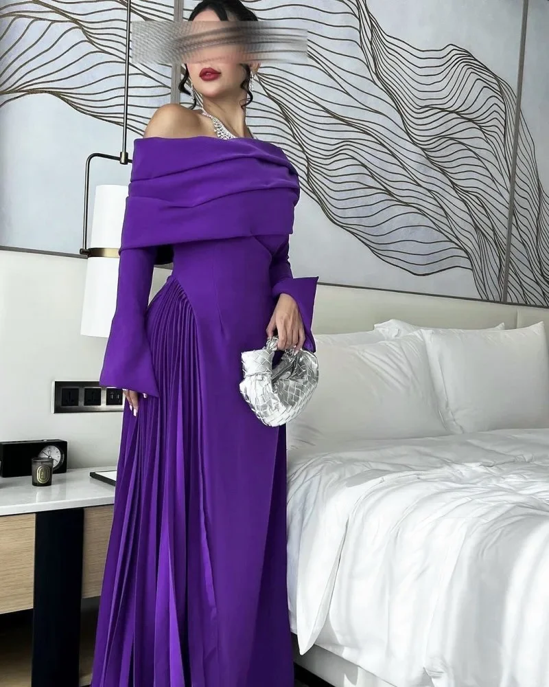 Off-Shoulder Dress – 2024 Winter Folded Evening Style