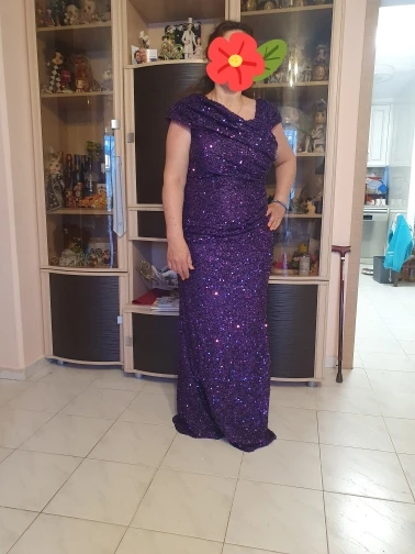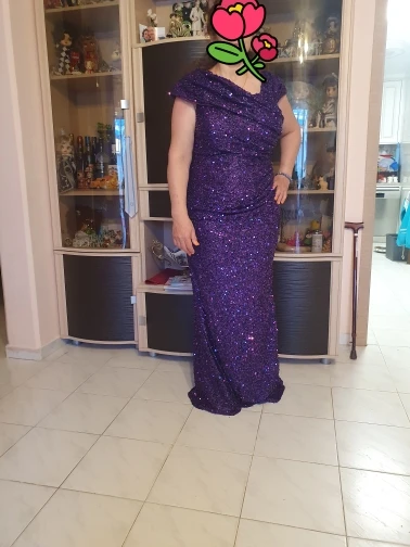 excellent dress, size chart is accurate. For size: waist 98, from 80 took size 46. Fits perfectly, zipper on the side for convenience. The dress is purple with sequins (scale), sewn very high quality and neatly. There is a lining.