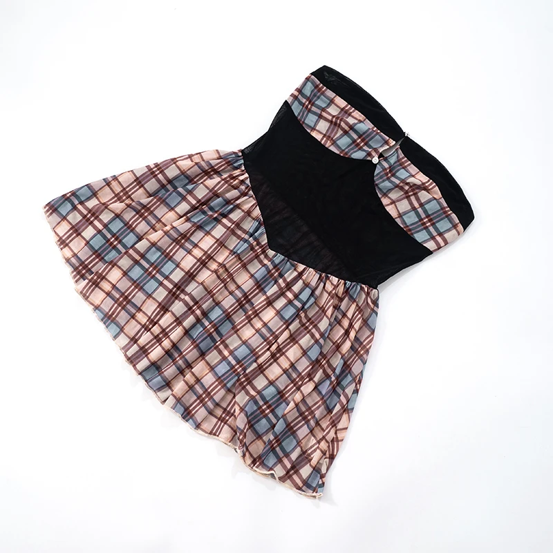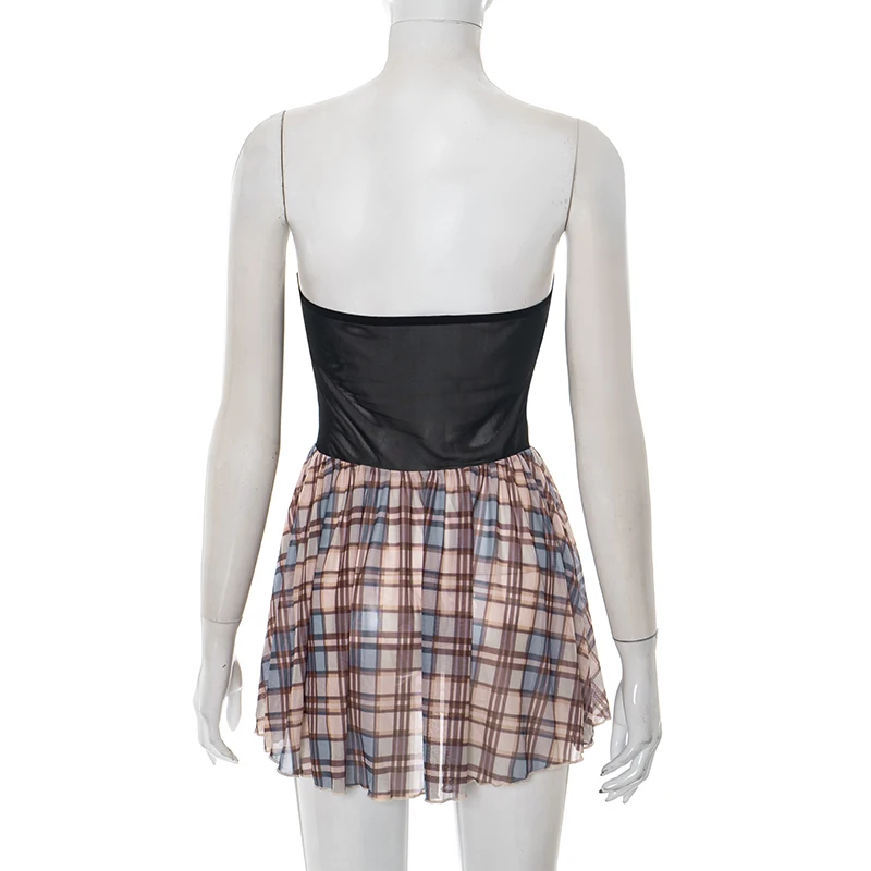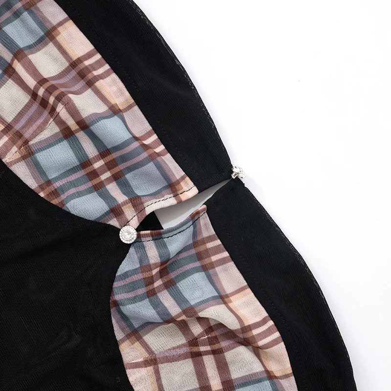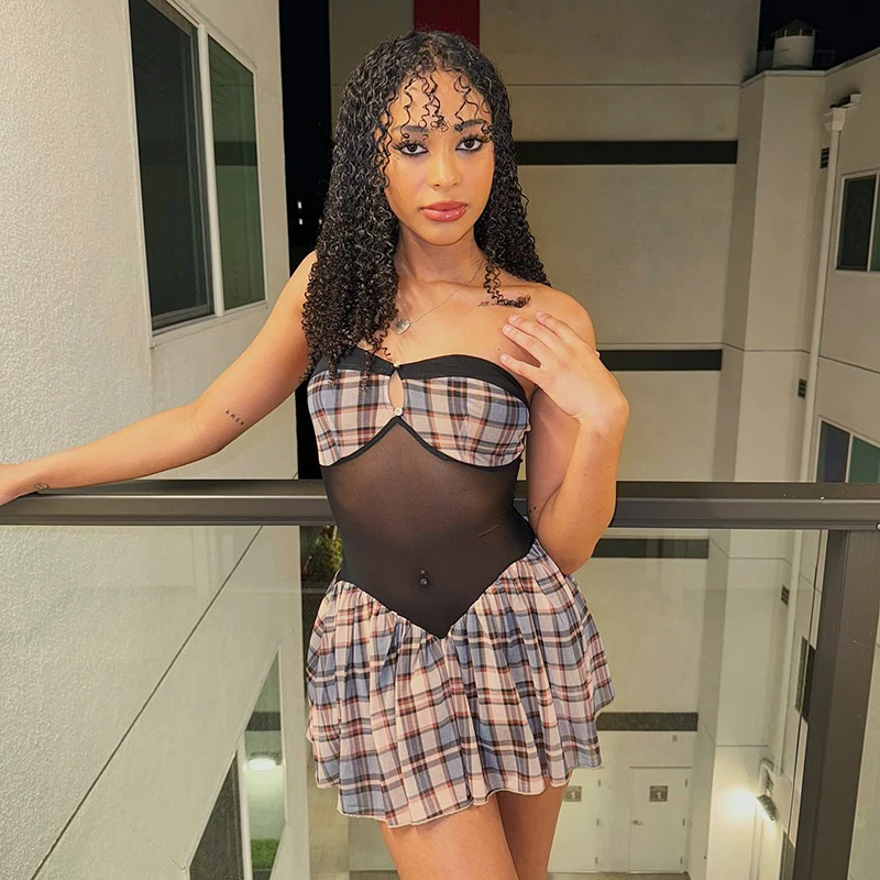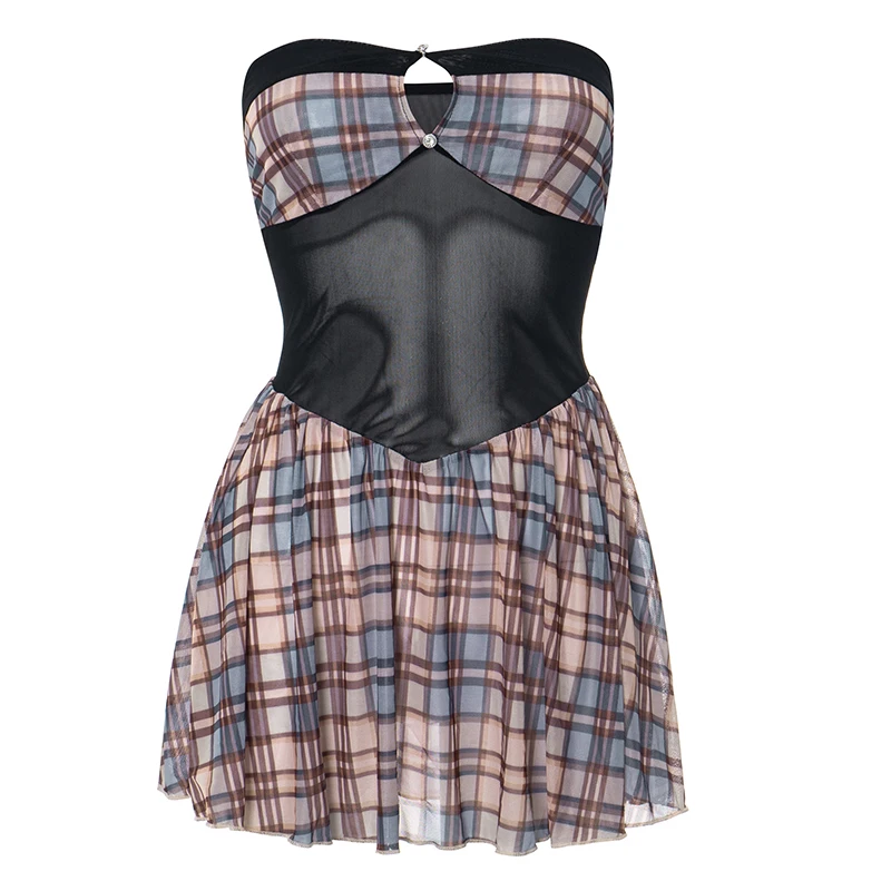 2 reviews for One Shoulder Sheath Plaid Mesh Dress – Short Y2K