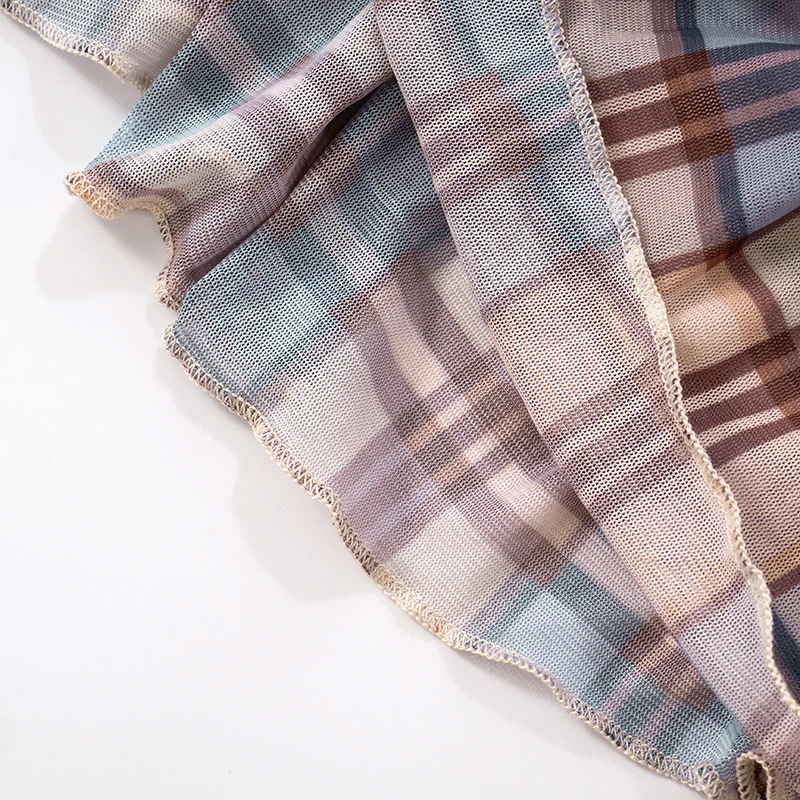 One Shoulder Sheath Plaid Mesh Dress – Short Y2K