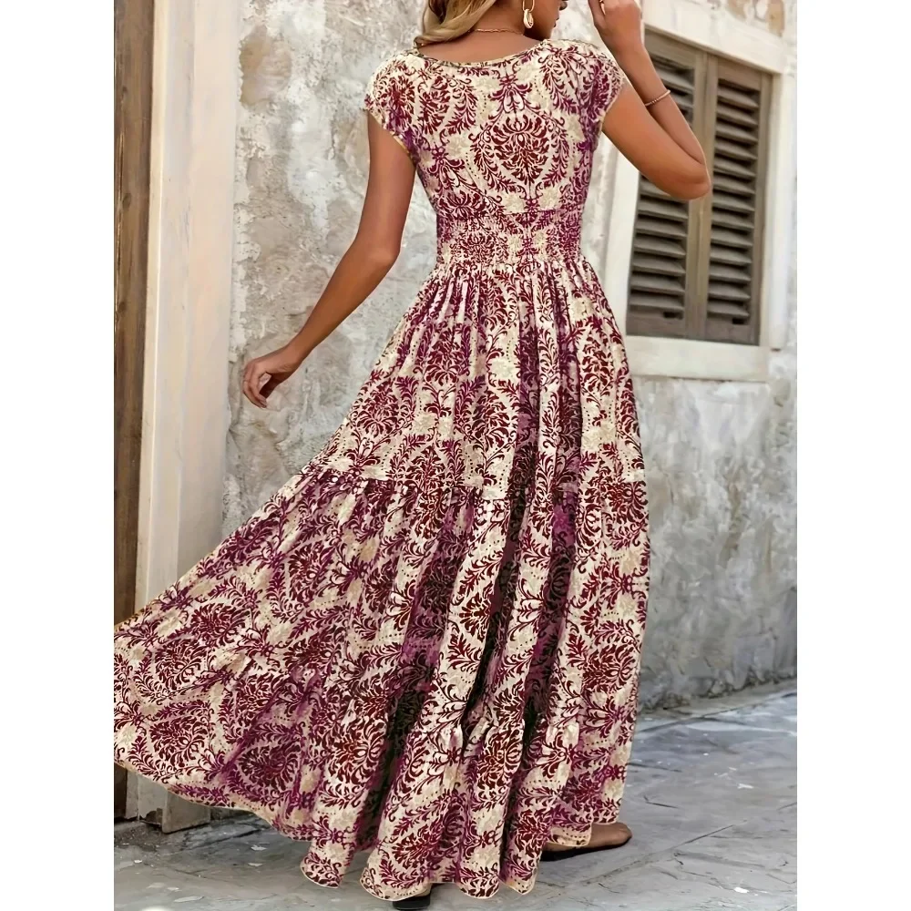 Plus Size Boho Dress – Flowy Floral V‑Neck Skirted Style