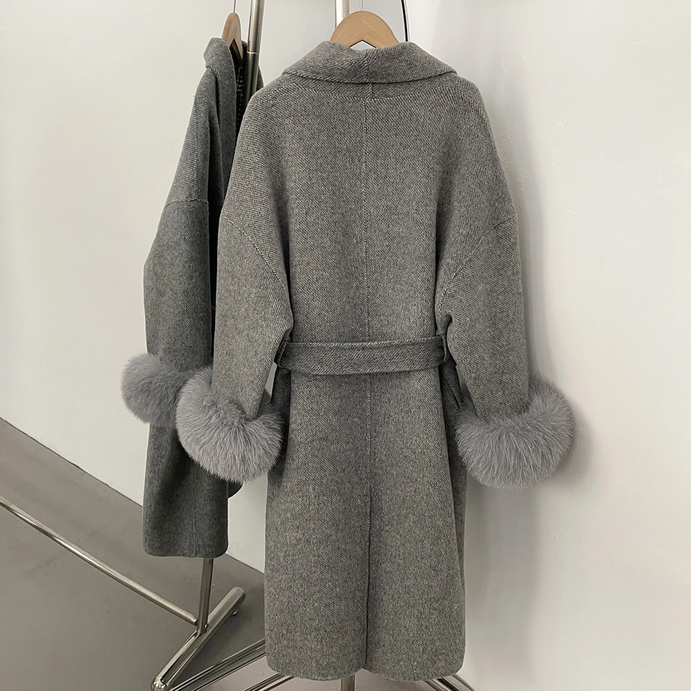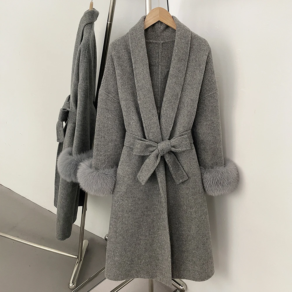 Discover the ultimate blend of luxury and versatility in our Real Wool Fur Coat, featuring dual straps, removable cuffs, and a cozy cashmere short for effortless style.