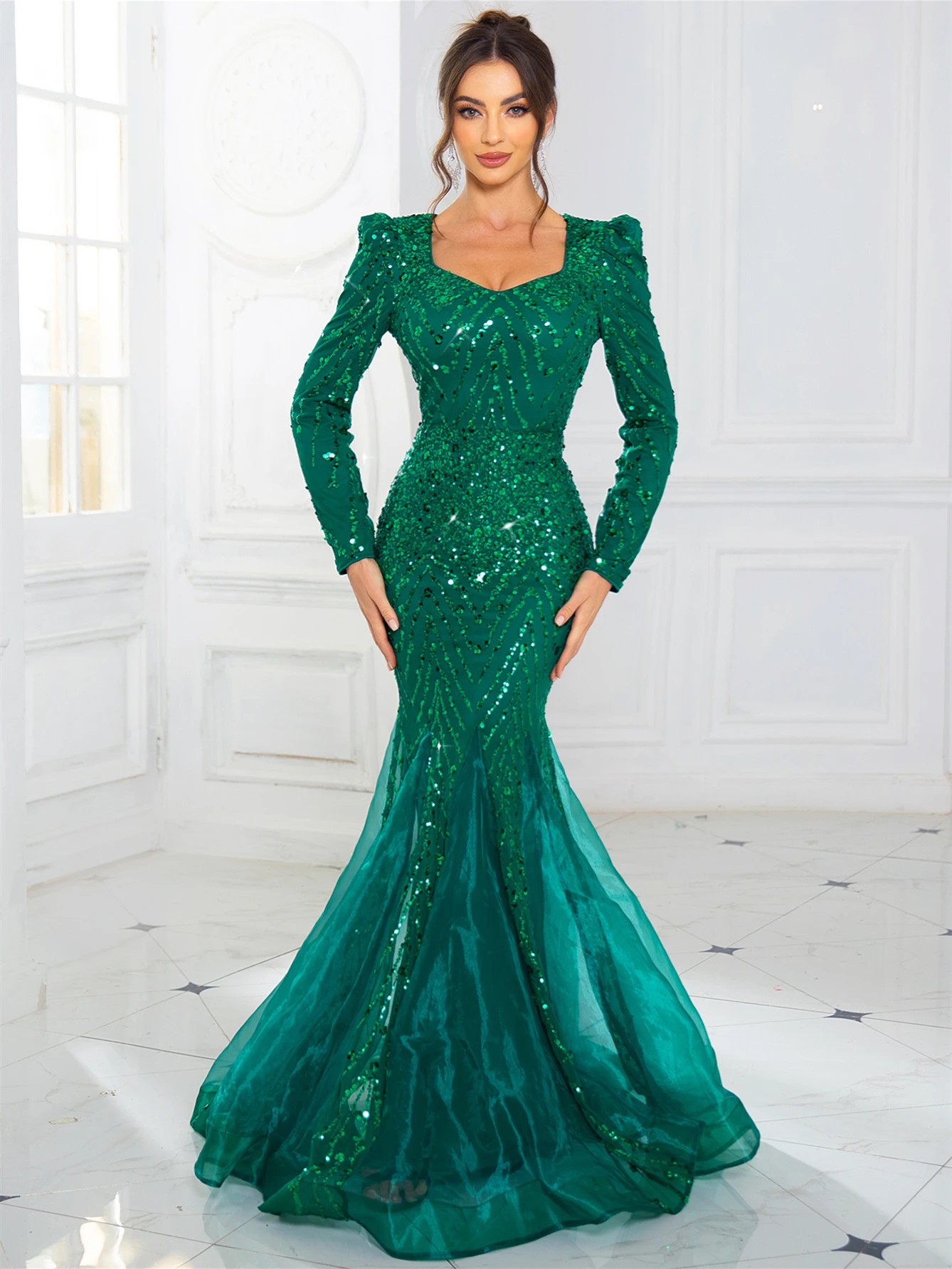 Romagic Long Sleeves Sweetheart Neck A Line Mesh Formal Evening Dress Floor Length Women Prom Party Dresses Winter 1Romagic Long Sleeves A-Line Mesh Evening Dress – Floor Length Elegance