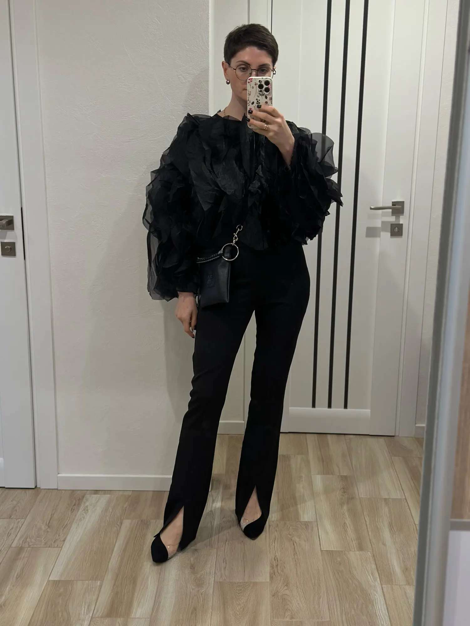 The blouse is simply wow! Luxurious, but not for summer, a spring option, because it can be hot. It moves with you and looks very expensive and elegant