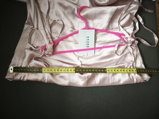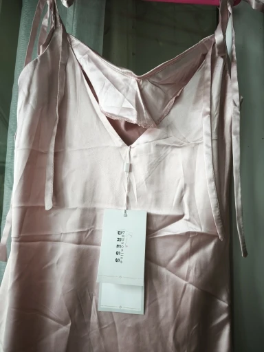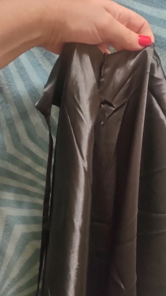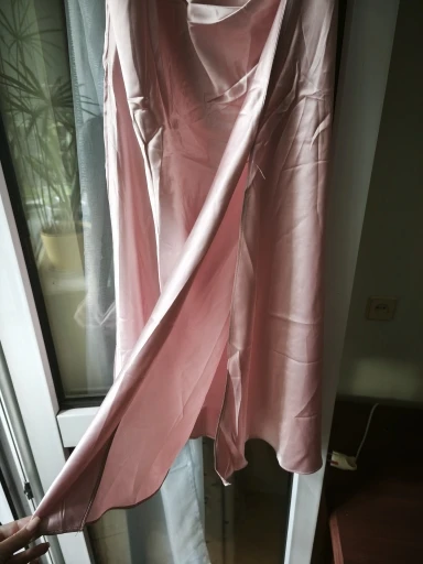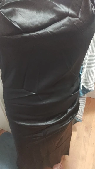 The dress has a smell, but I think it will dissipate. It fits, but it seems a bit below the hip. The draping somehow spreads out and doesn’t hold, I think it needs to be sewn up. The quality is pleasant. There is a slit and a zipper on the side, but I wear it underneath, so I didn’t need it.