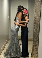 Free Shipping1 review for Sequin Mermaid Gown – V‑Neck Sleeveless Open‑Back Lace Design