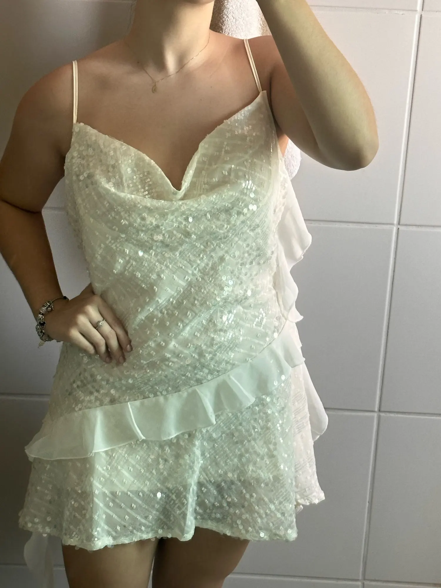 Shimmer into the sun in our Sequin Mini Dress— a backless beach slip that turns heads and keeps you cool all summer long.