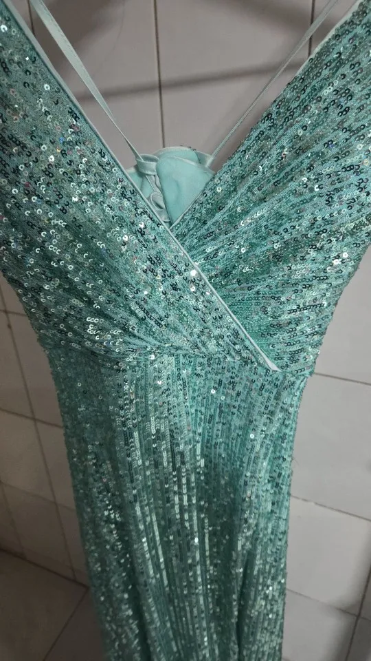 1 review for Sequin V‑Neck Dress – 2025 Long Party Gown with Slit