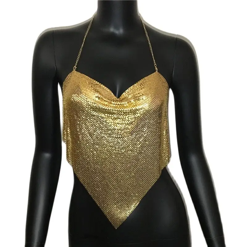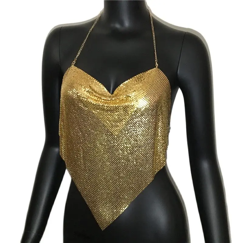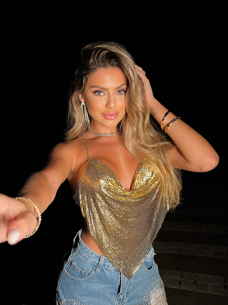 Sequins Tank Top with Adjustable Chain Neck – Festival V‑Neck