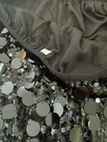 The sequins come off easily. But it looks good. The fabric is very simple and thin. But functional. The size is exact