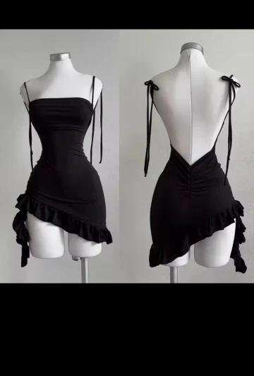 Step into summer confidence with our **Sleeveless Backless Ruffles Mini Dress** – black lace‑up style that blends daring backless charm with playful ruffles for a truly eye‑catching look.