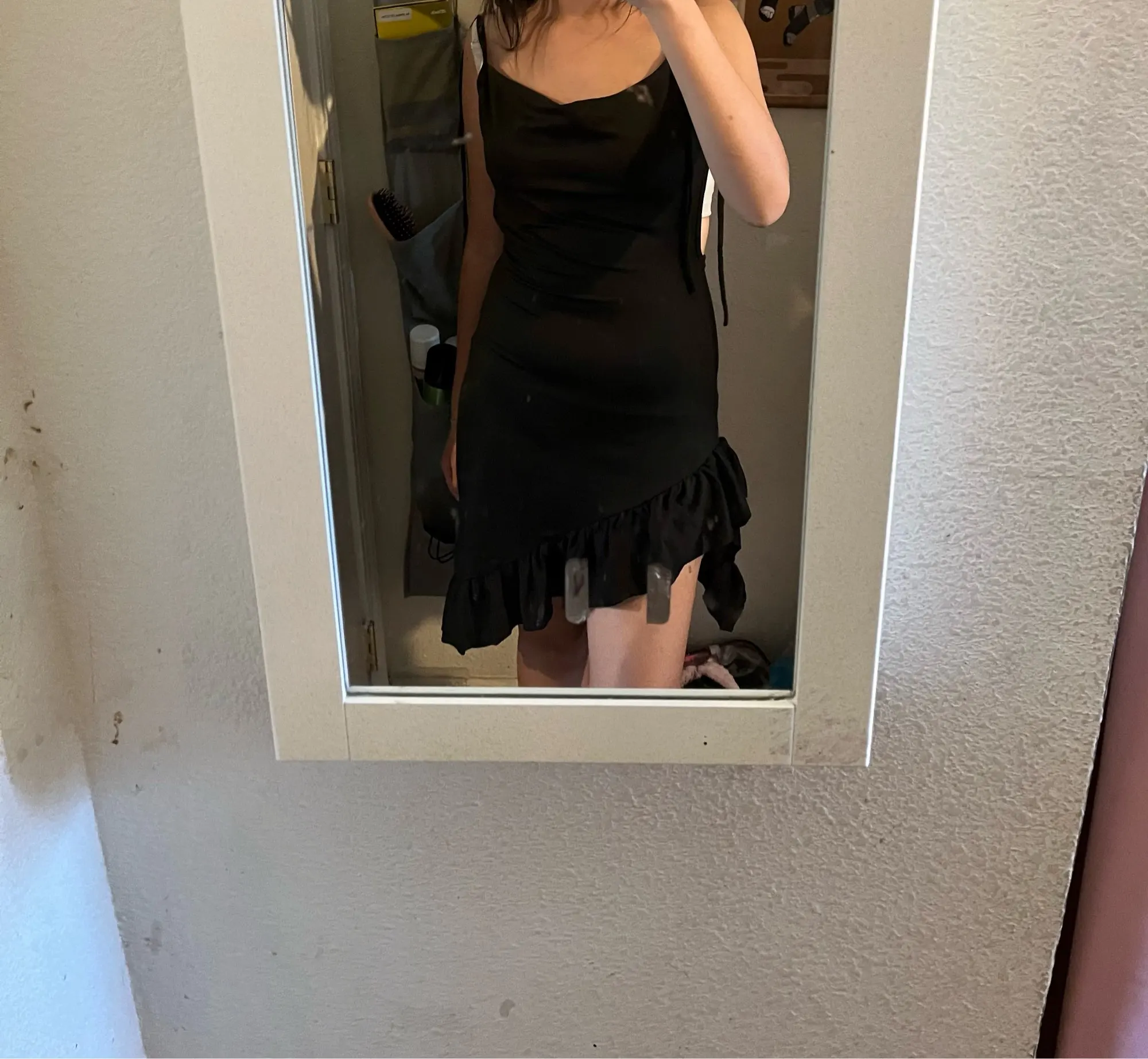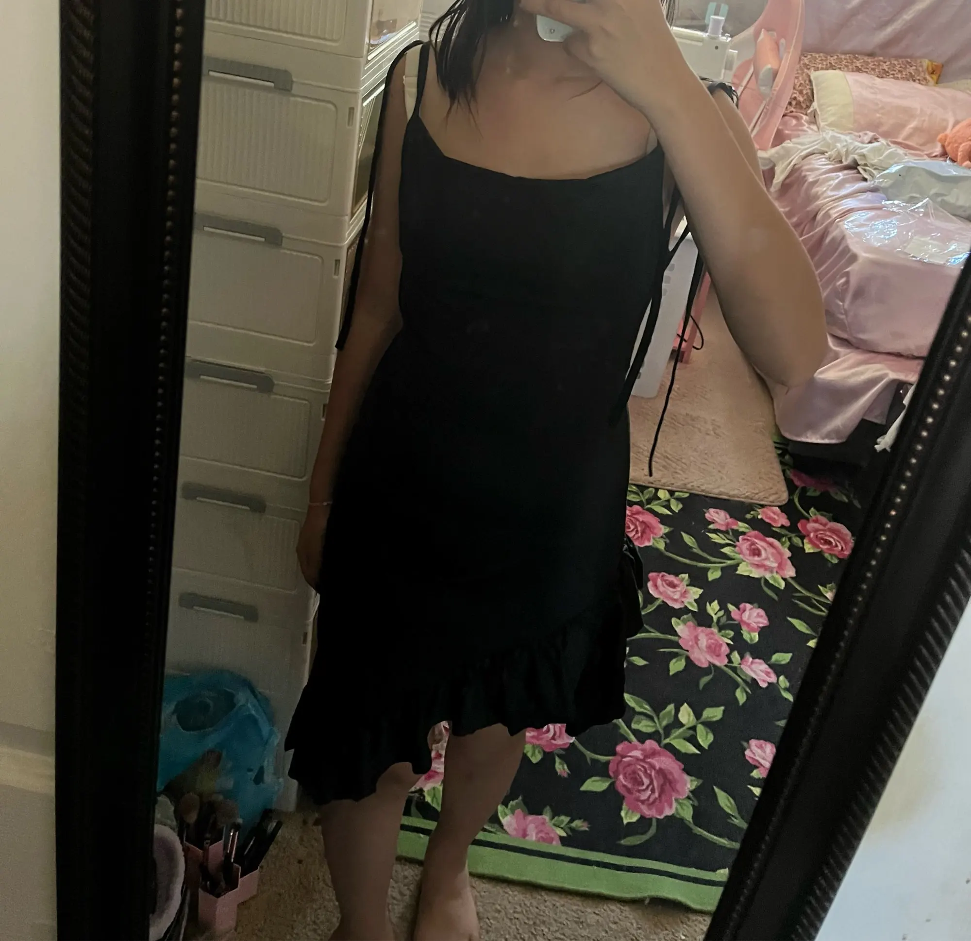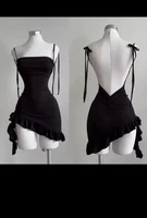 9 reviews for Sleeveless Backless Ruffles Mini Dress – Black Lace‑Up
