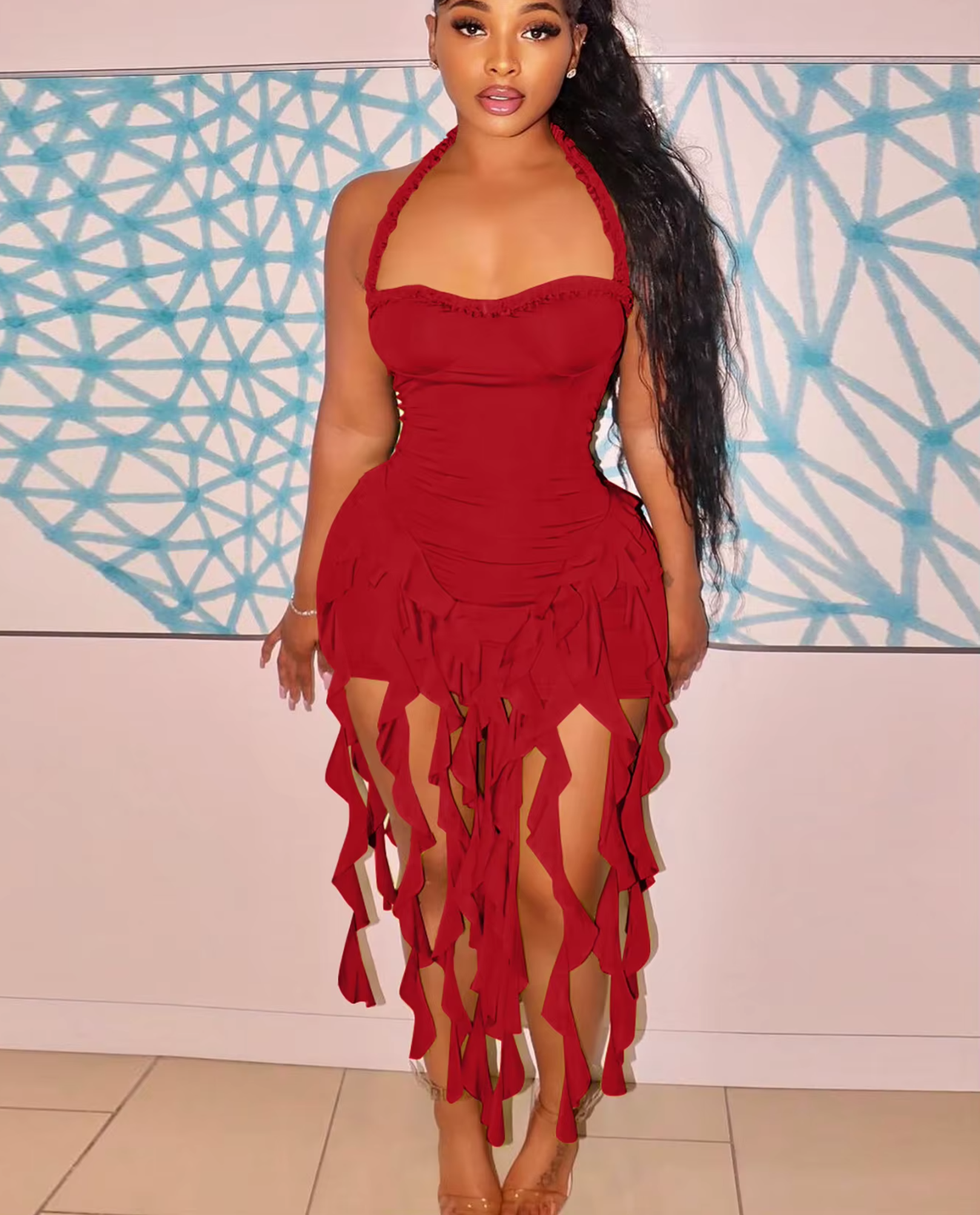 Discover the perfect summer vibe in our Slim Mini Dress – it’s backless, ruffled, and a taseel style dream that turns every head! Feel confident, playful, and utterly chic wherever you go.