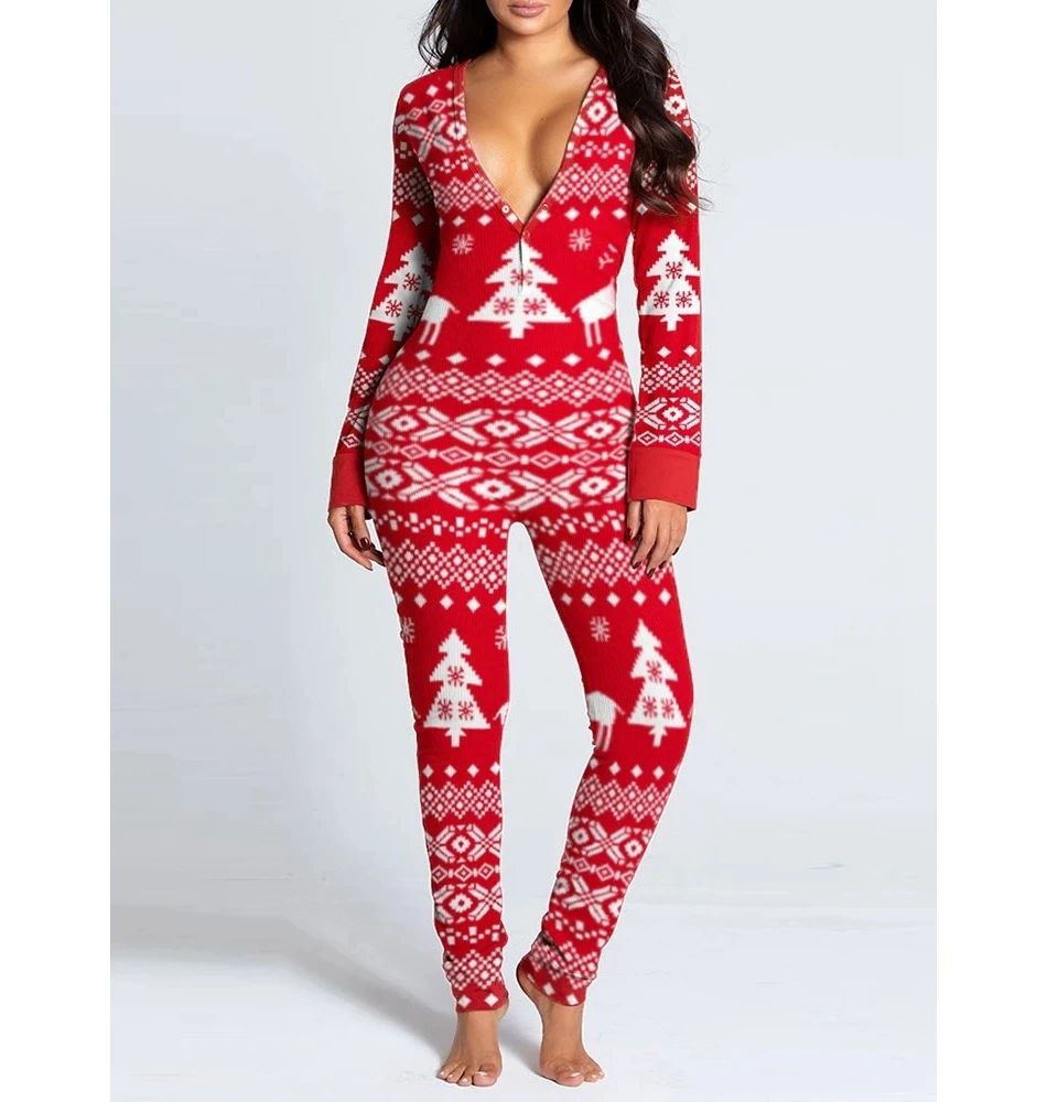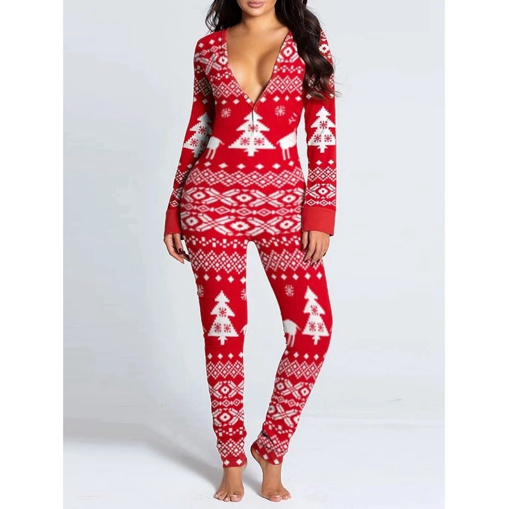 2 reviews for Snowflake Elk Print Women’s Long Sleeve Jumpsuit for NYE