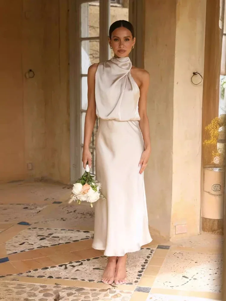 Get ready to shine in a stunning Solid Color Long Dress—sleek, sleeveless, and party‑ready with its chic stacked collar for an unforgettable look.