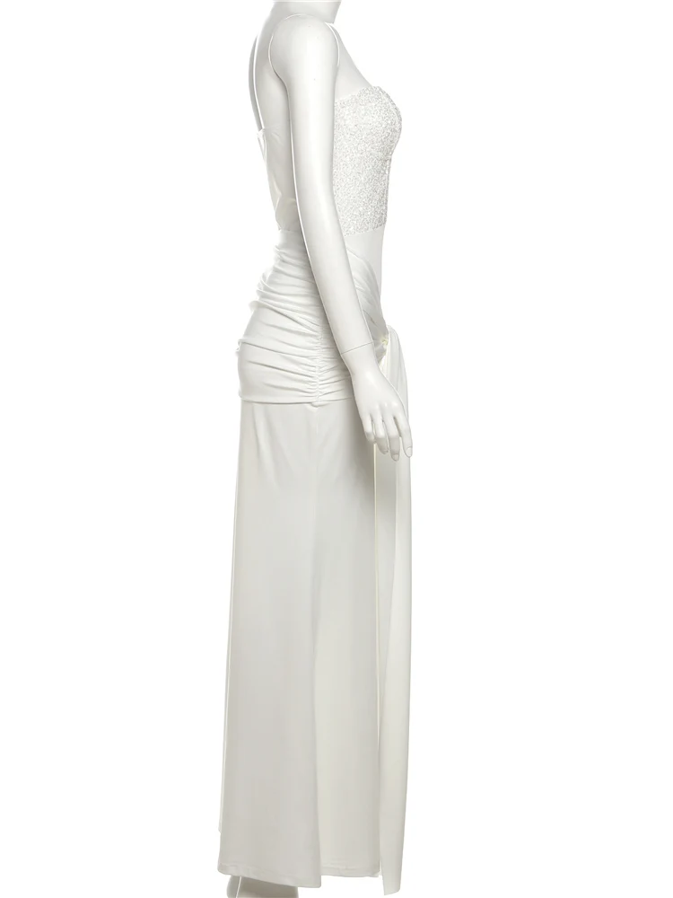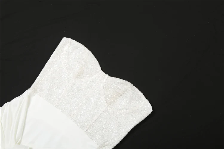 1 review for Strapless Dress Sequin Patchwork Backless Knot Ribbon