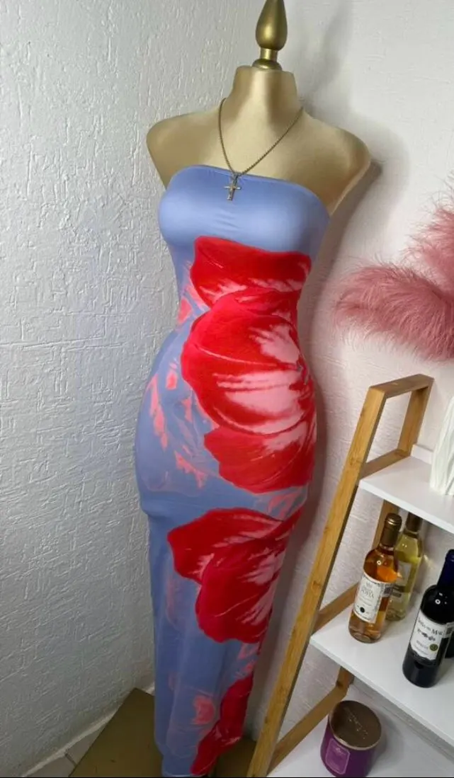 18 reviews for Strapless Maxi Dress – Print Tube, Off‑Shoulder, Backless Beachwear