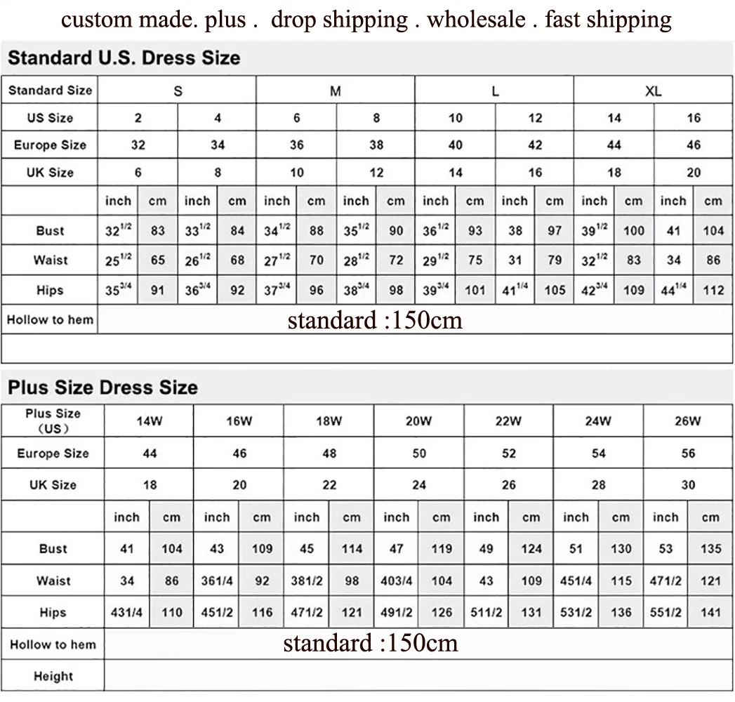| Size (US) | Bust (in) | Waist (in) | Hip (in) |
