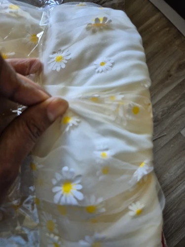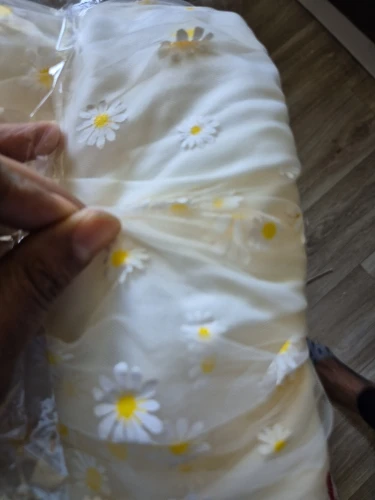 The dress is pretty, only the straps are a bit short, the material is good, the flowers are well-painted, I like it a lot.