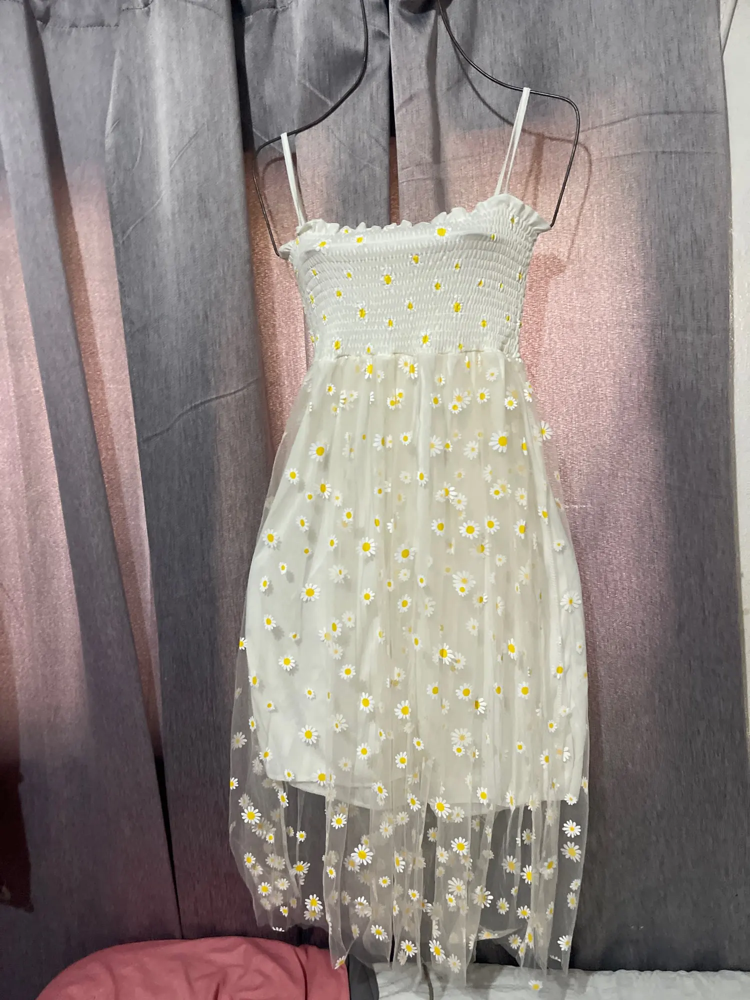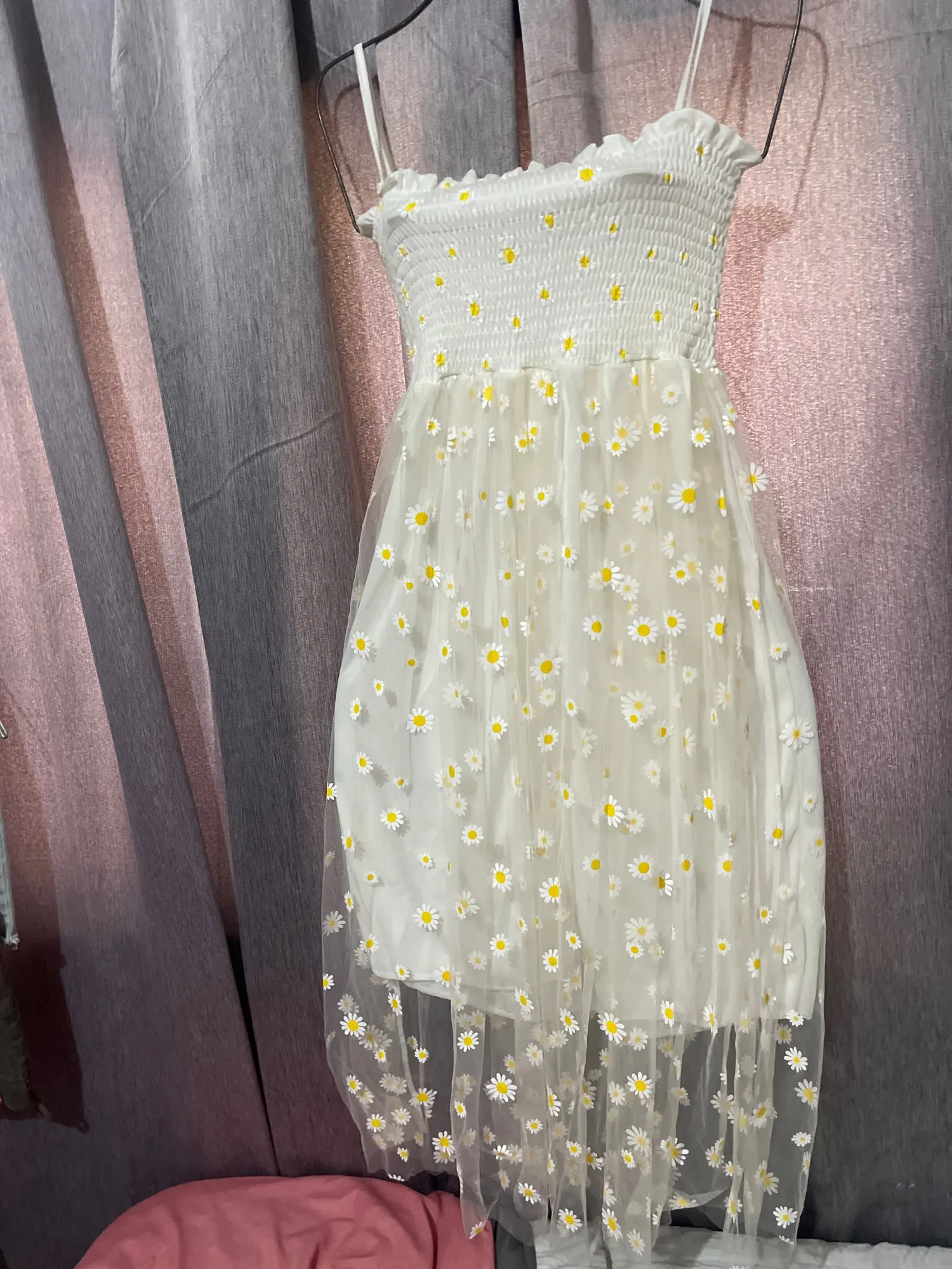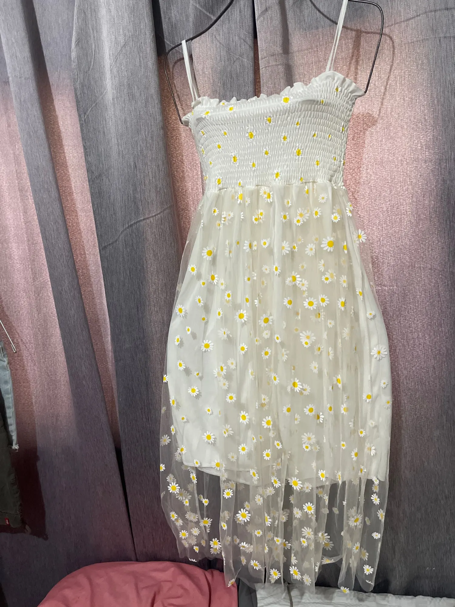 Two Layers Mesh Daisy Flower Dress for Vacation Beach