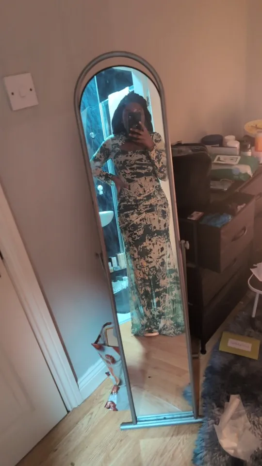 Very nice dress and nice stretch fit the green is not quite as dark as in the photo but it’s still very nice