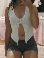 V‑Neck Halter Crop Top – Summer Sleeveless Split-Back Design