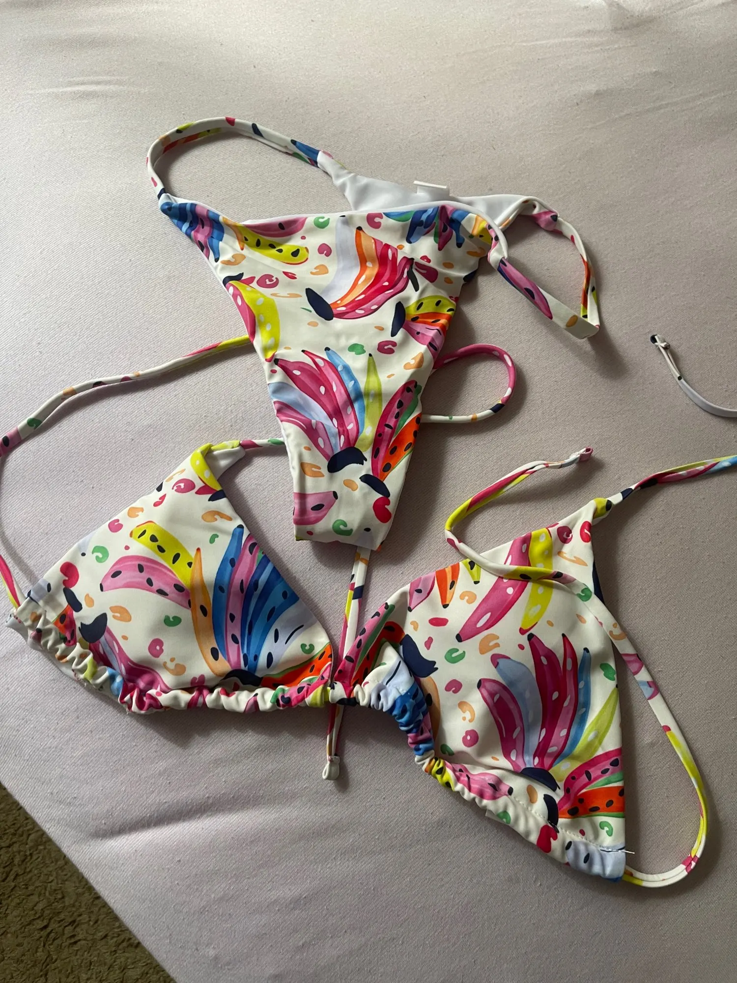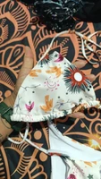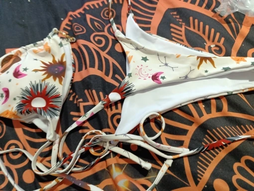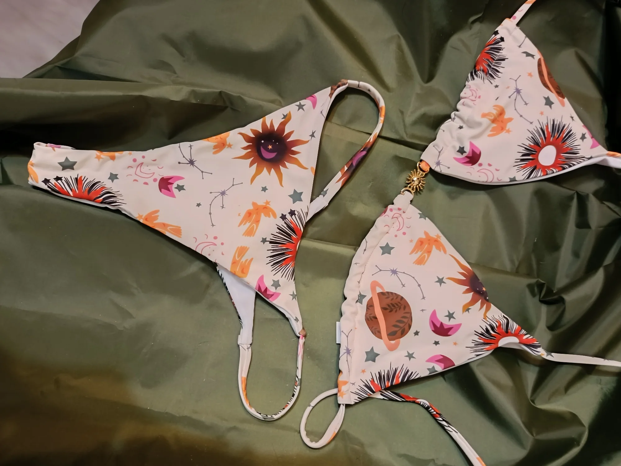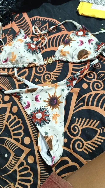 The back part of the bikini is not the same as in the photo, the gold medal is missing. It’s very big. But the material is very soft and beautiful. But I had to return it because it was too big.