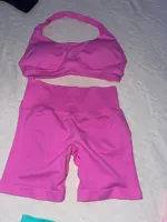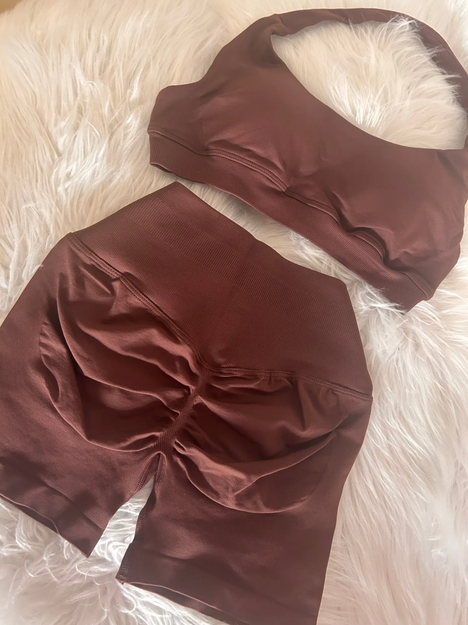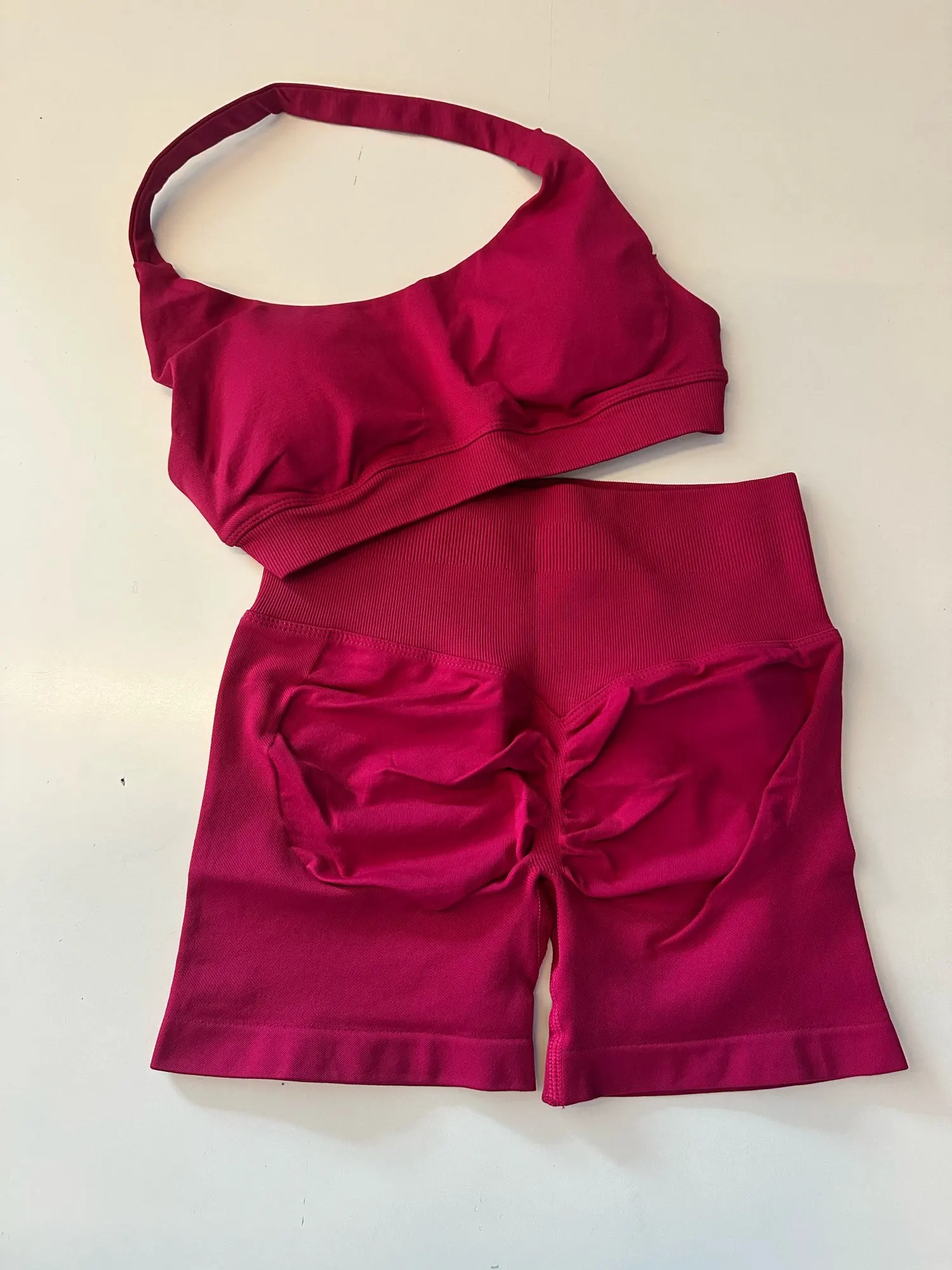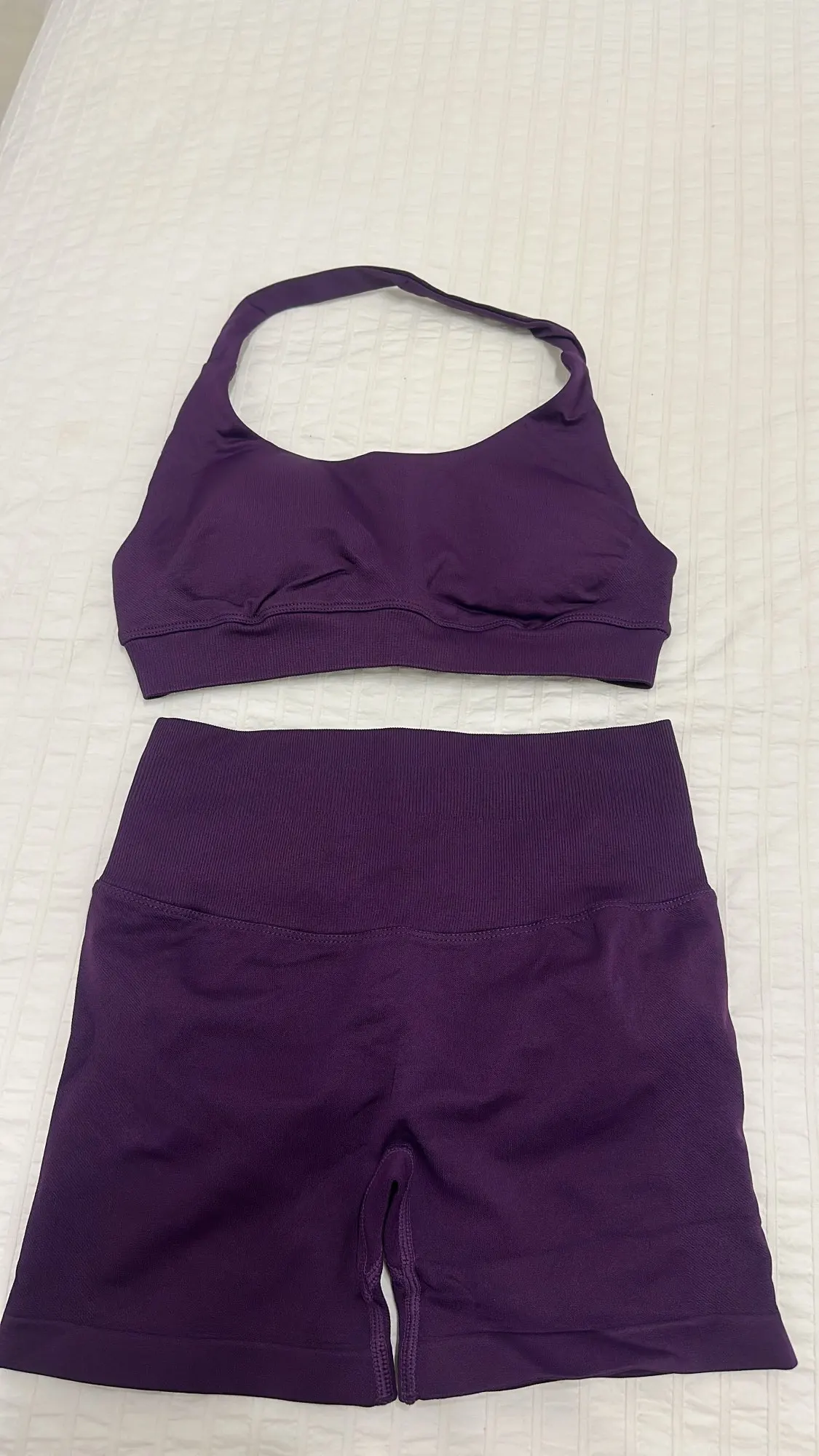Elevate your flow with our seamless halter bra and impact shorts set—crafted for comfort, style, and total movement freedom, it’s the ultimate yoga suit for women ready to shine on every mat.